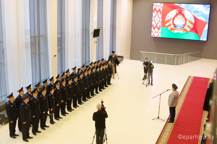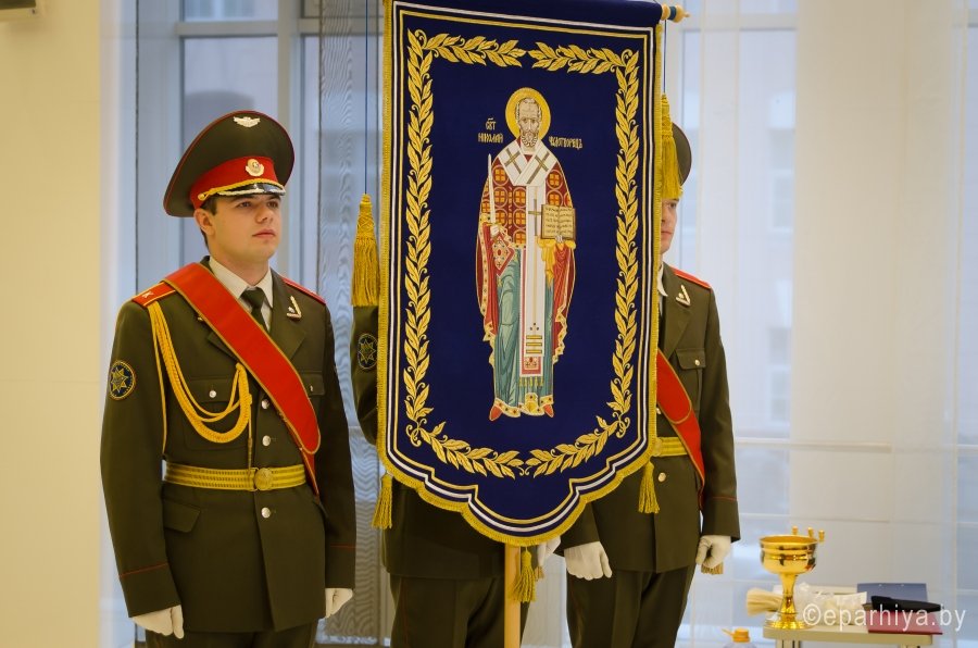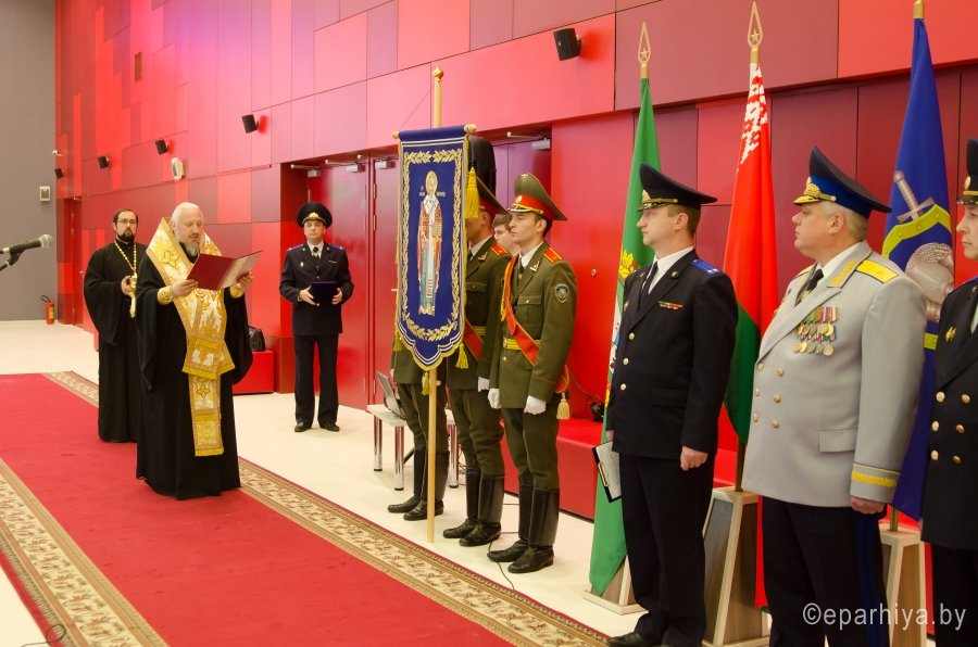 11 января 2016г., Управление Следственного комитета Республики Беларусь по Гомельской области стало первым в республике, где наряду со знаменем, церковная хоругвь будет сопровождать военнослужащих при самых знаменательных событиях — ритуалах присяги, в праздники и памятные даты. В этот день Преосвященный Стефан возглавил чин освящения хоругви, которую передал начальнику управления Следственного комитета Республики Беларусь по Гомельской области, генерал-майору юстиции Олегу Анатольевичу Шаркову. После вручения, хоругвь, торжественным маршем, знамённая группа пронесла перед личным составом и работниками. С Архипастырским словом к сотрудникам Управления Следственного комитета обратился Преосвященный: "Хоругвь - это знамя победы, которое духовно вдохновляет военнослужащих". В ответном слове начальник управления Следственного комитета Республики Беларусь по Гомельской области, генерал-майор юстиции Олег Анатольевич Шарков отметил, что сотрудничество Гомельской епархии и Управления - это прежде всего сохранение духовных традиций и нравственных ценностей. |