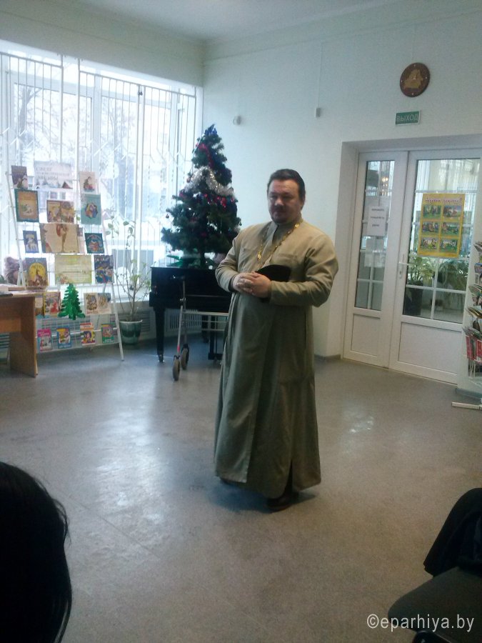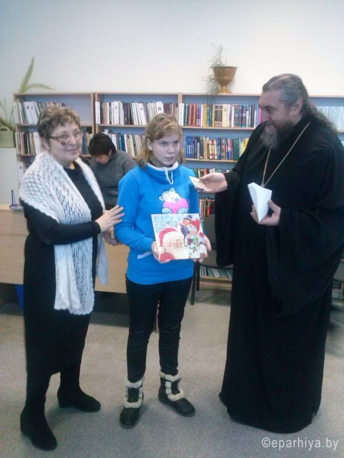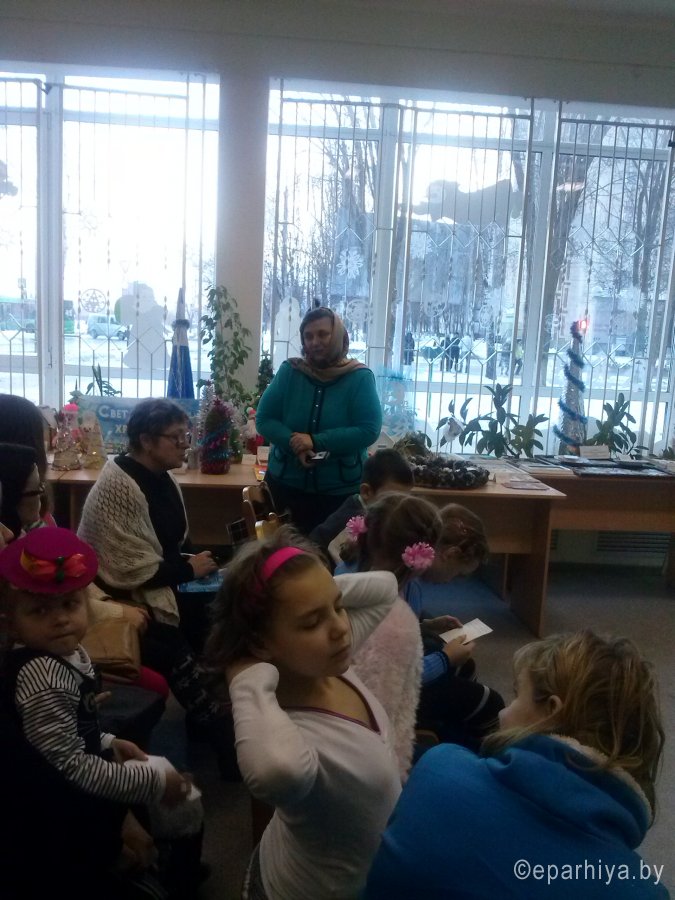 15 февраля 2016 года в библиотеке филиала №1 им.И.П.Мележа сети публичных библиотек г.Гомеля состоялось мероприятие по подведению итогов выставки детского и семейного творчества «Свет Рождества Христова». Ставшая традиционной выставка ежегодно организовывается в рамках сотрудничества библиотеки, Гомельской Епархии и городского центра социальной защиты семьи и детей. 46 участников выставки представили более 60 творческих работ разной техники исполнения. По благословению Владыки Стефана все участники отмечены ценными подарками, которые были вручены отцом Владимиром. Библиотека филиала №1 им.И.П.Мележа и ее читатели выразили благодарность Владыке, протоиерею Владимиру Селенко – настоятелю храма Александра Невского, протоиерею Александру Цуканову – клирику храма Преображения Господня, Машковской Анне Михайловне – координатору отдела социального богослужения и церковной благотворительности. |