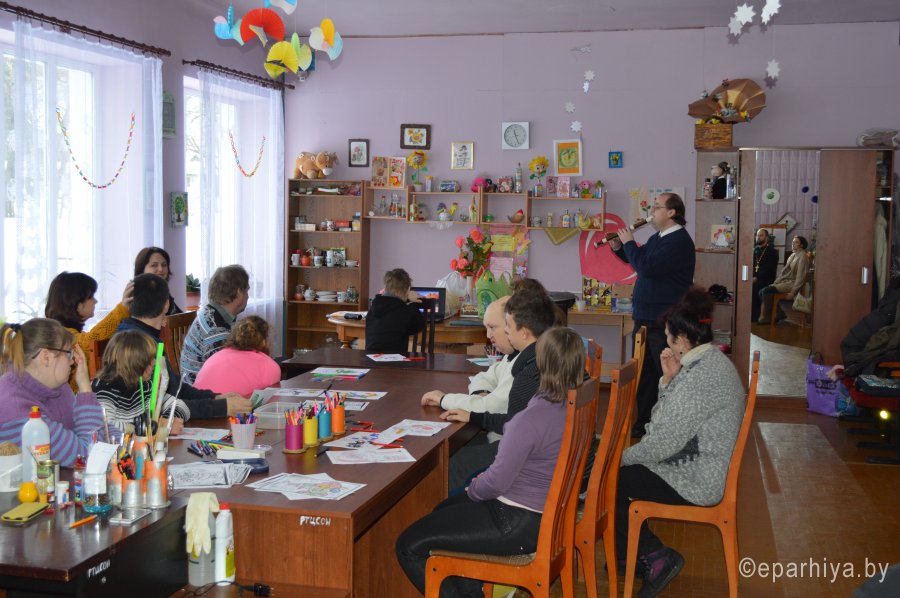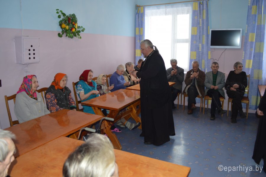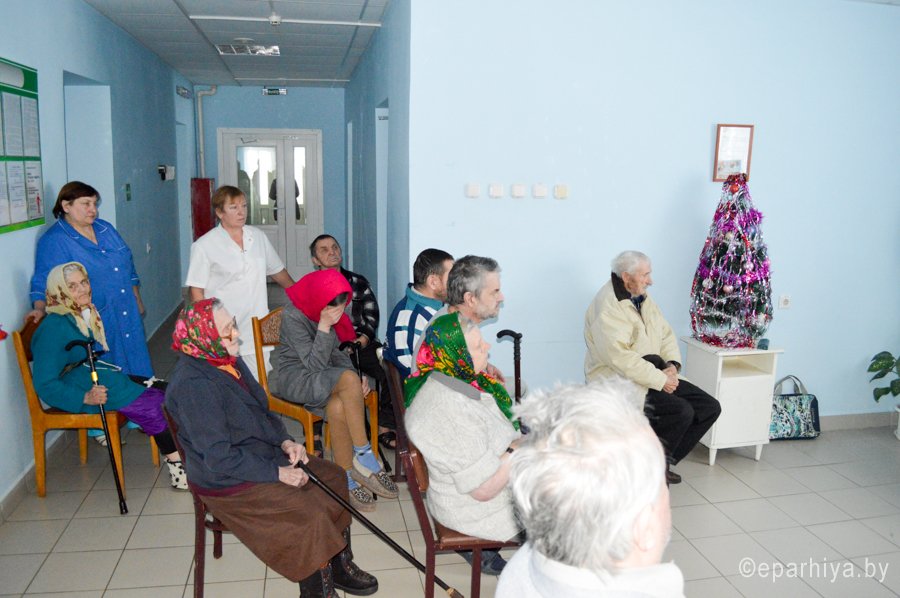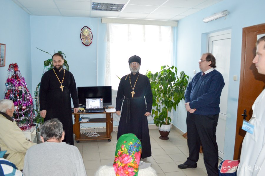 С 12.01.2016 г. по 15.01.2016 г. священнослужители Речицкого благочиния посетили с Рождественскими поздравлениями отделение круглосуточного пребывания для граждан пожилого возраста и инвалидов (аг. Холмеч) и отделение дневного пребывания для инвалидов (г. Речица), учреждения «Речицкий территориальный центр социального обслуживания населения», а также Короватичскую больницу сестринского ухода. В этих учреждениях, которые предназначаются для оказания нетрудоспособным гражданам, сохранившим полностью или частично способность к самообслуживанию и передвижению, консультационно-информационных, социально-бытовых, социально-медицинских, социально-посреднических, социально-реабилитационных услуг и социально-правовой помощи находится немало людей, которые нуждаются в нашей помощи, заботе и добром слове. Персонал, который работает в отделениях, строит свою работу с учетом возрастных и индивидуальных особенностей людей с ограничениями, с целью создания максимально благоприятных условий для их реабилитации и социальной адаптации. Клирик Свято-Успенского собора в г. Речице, протоиерей Ростислав Миронович, настоятель прихода храма Святого Благоверного князя Александра Невского аг. Холмеч Речицкого района протоиерей Виктор Демиденко и настоятель прихода храма Богоявления д. Короватичи Речицкого района иерей Алексий Лысиков сердечно поздравили всех с праздником Рождества Христова, вручили им подарки и пожелали всем мира, добра, крепости духовных сил и терпения на жизненном пути. А Дмитрий Иванович Анисимов подарил всем присутствующим радость и хорошее настроение, исполнив литературно-музыкальные композиции. |