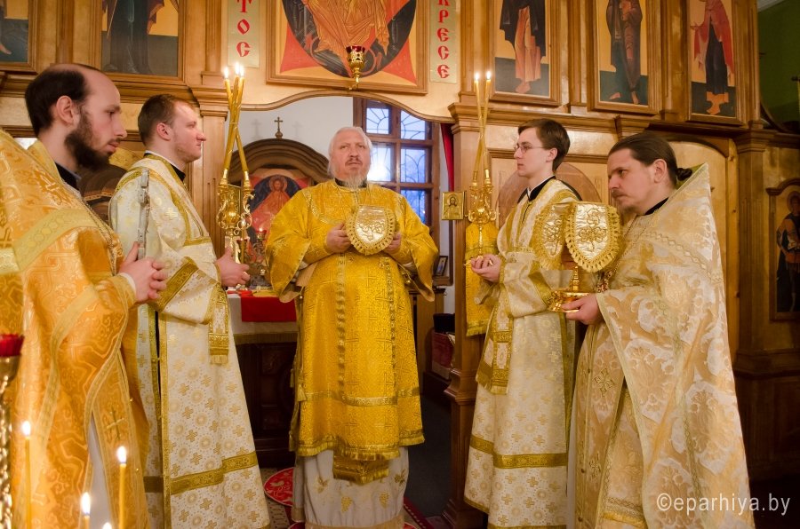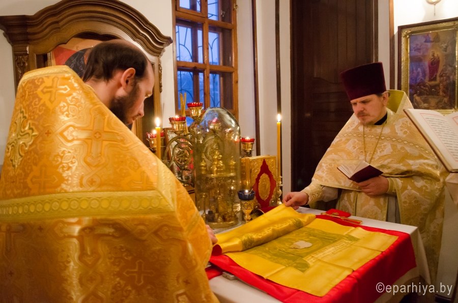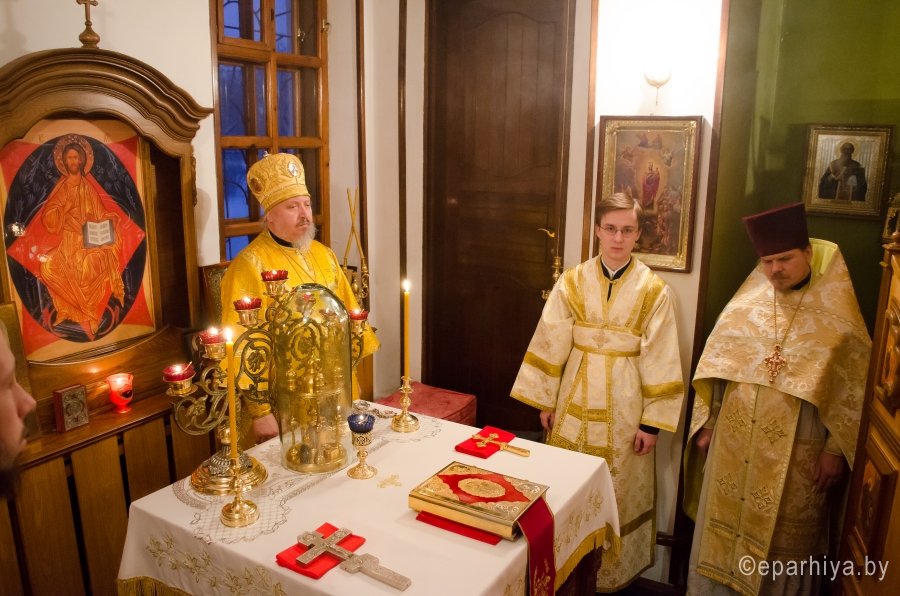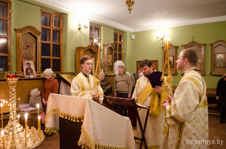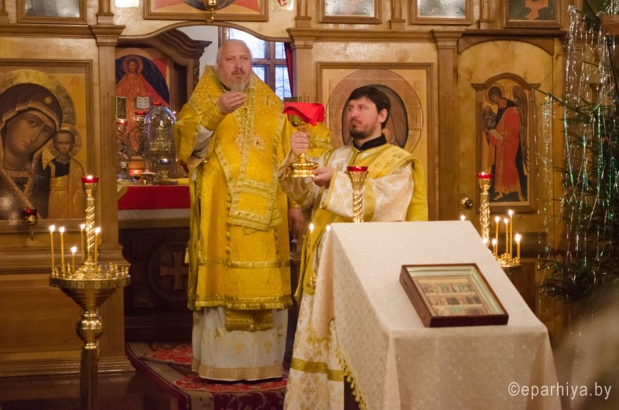16 января 2016г., в Предпразднство Богоявления, а так же день памяти прор. Малахии. Мч. Гордия. Сщмч. Василия пресвитера, Преосвященнейший Стефан, епископ Гомельской и Жлобинский, возглавил Божественную литургию во Всехскорбященском храме г.Гомеля Преосвященному сослужили: настоятель прихода протоиерей Вадим Качан и духовенство прихода. По окончании богослужения Владыка обратился к молящимся со словами Архипастырского назидания. |