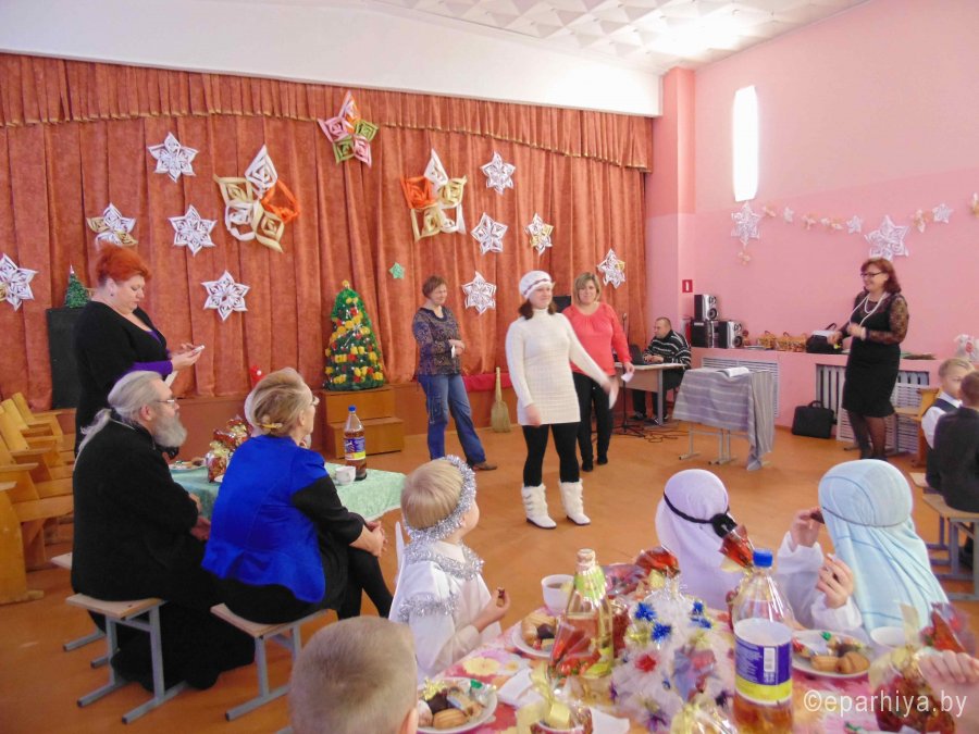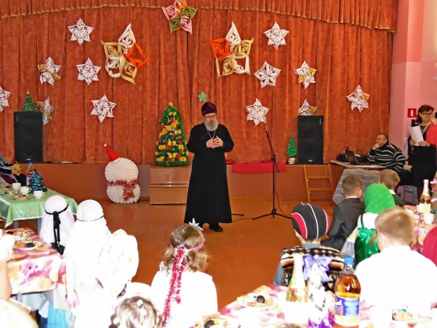 16 января 2016 года в «ГУО СШ №5 города Добруша» состоялся Рождественский утренник. Учащиеся Православного факультатива пришли в этот субботний день в школу с родителями торжественные и нарядные, чтобы своим творчеством украсить и почить этот светлый праздник. Открыл мероприятие пастырским словом протоиерей Евгений Шупеня, помощник благочинного по религиозному образованию и катехизации. Затем ребята показали сценку, которая учит трудолюбию и милосердию, повествует о том, как наши добрые дела превращаются в драгоценные подарки, угодные Богу. Звучали рождественские песни и стихи. В увлекательных играх и конкурсах участвовали не только дети, но и их родители. Радостно было в этот день в актовом зале школы. Теплую и уютную атмосферу праздника создавали также сладкие угощения на столах. Ученики из ГУО СШ №5 устраивают Рождественские представления не только в своей школе. Они уже готовятся к совместному концерту с ребятами из воскресной учебно-воспитательной группы Добрушского благочиния, а также собираются выступить перед детьми с особенностями психофизического развития из Центра коррекционно-развивающего обучения и реабилитации. |