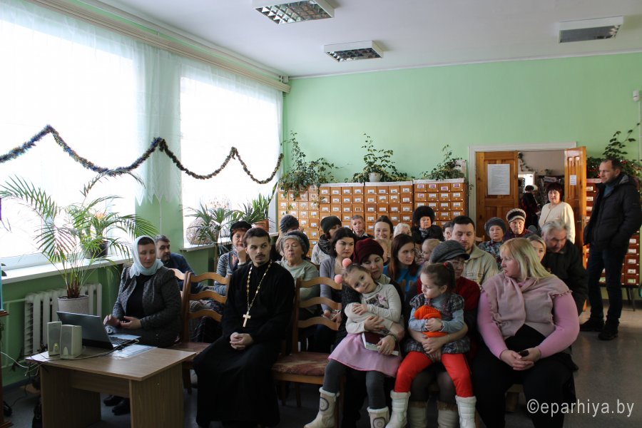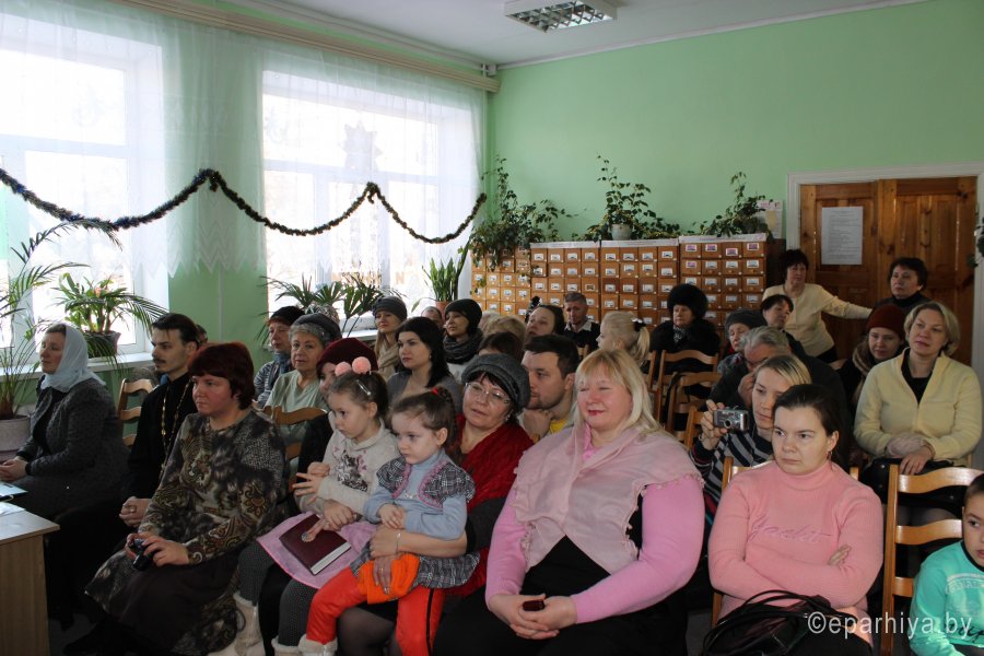 17 января 2016 г. клирик храма св. прав. Иоанна Кормянского, иерей Алексей Рябиков совместно с воскресной школой храма, посетили и поздравили своим выступлением читателей городской библиотеки филиала №2. Священнослужитель поздравил всех присутствующих с Рождеством Христовым и святыми днями,так же рассказал читателям о празднике Крещения Господня и ответил на все вопросы. |