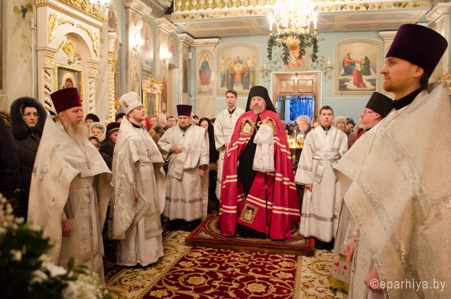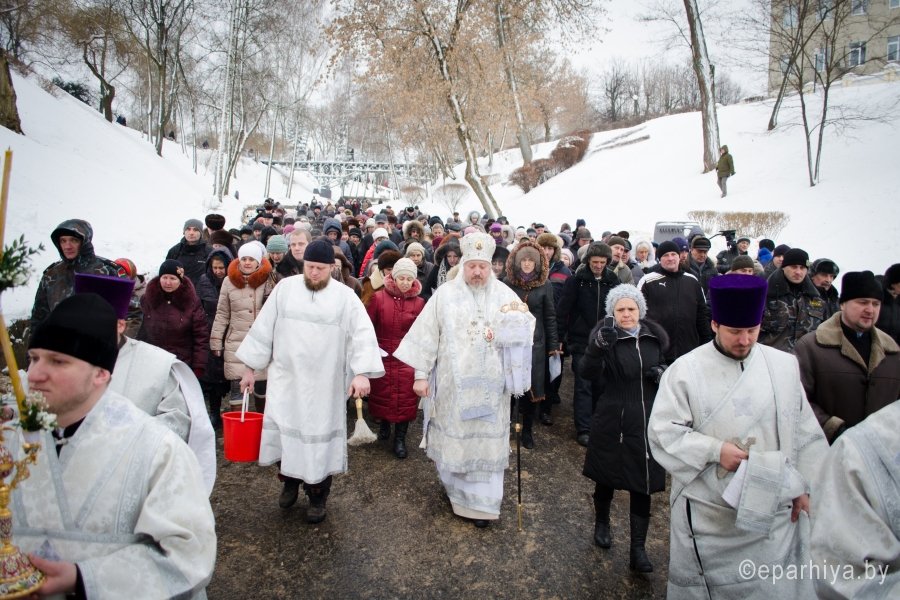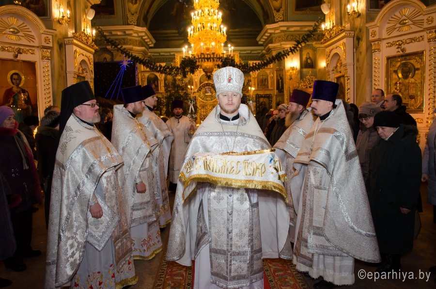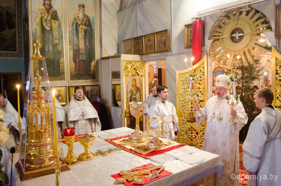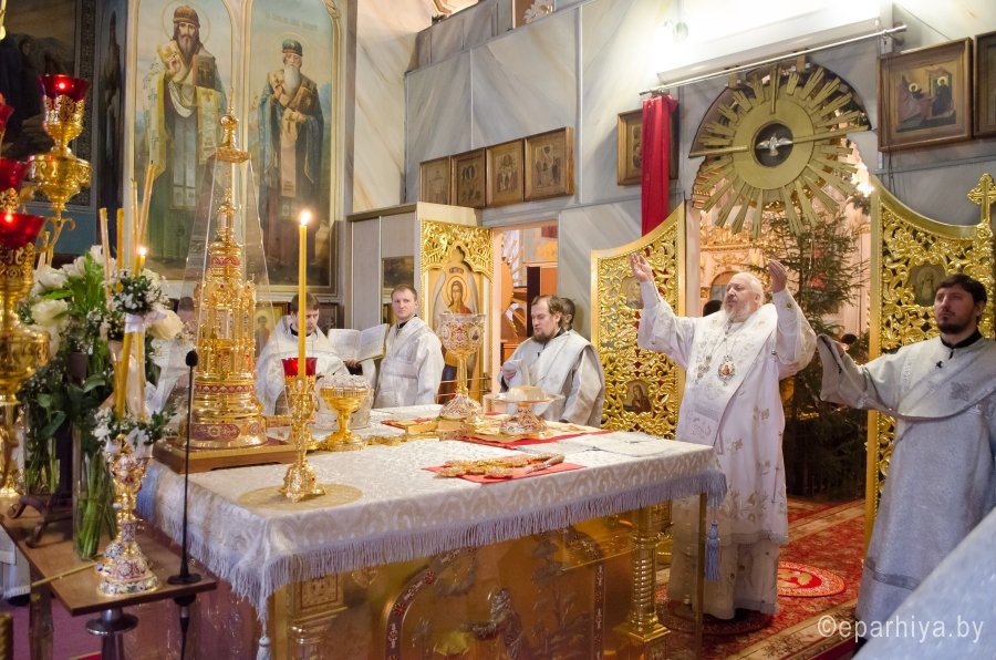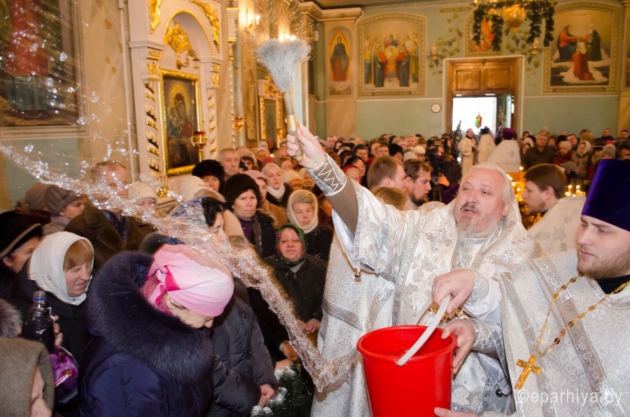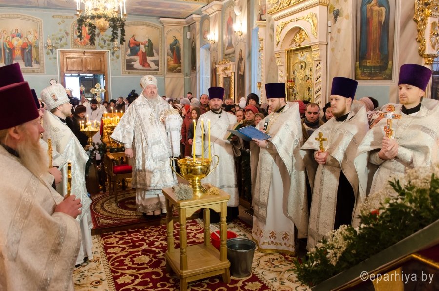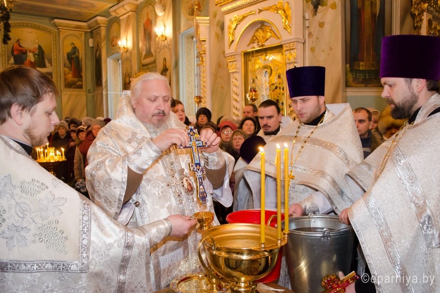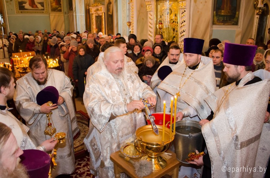 19 января 2016 года, в праздник Крещения Господа Бога и Спаса нашего Иисуса Христа, Преосвященный Стефан, епископ Гомельский и Жлобинский, совершил праздничную литургию в кафедральном Свято-Петро-Павловском соборе города Гомеля. Преосвященному сослужили: секретарь Гомельской епархии протоиерей Георгий Алампиев и духовенство собора. По завершении Литургии Владыка вместе с духовенством совершил чин Великого освящения воды и возглавил Крестный ход к набережной реки Сож. Вместе с правящим архиереем в этот светлый крещенский день молилось множество прихожан, которые получили пастырское благословение. |