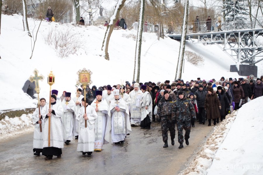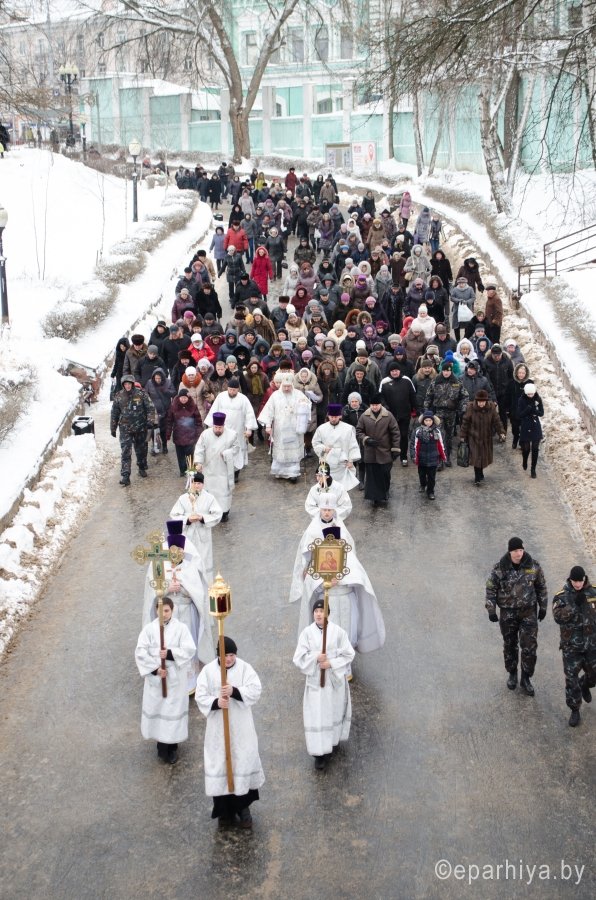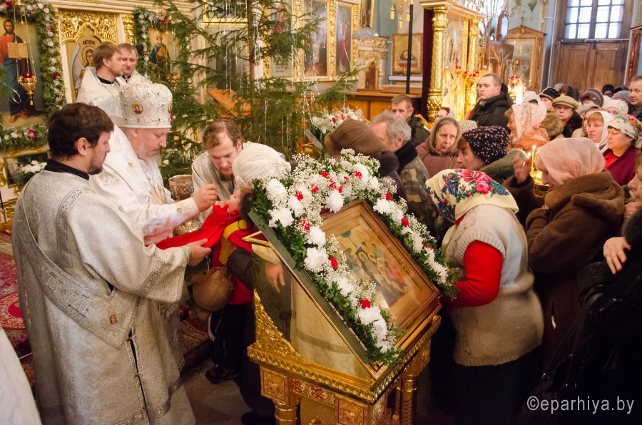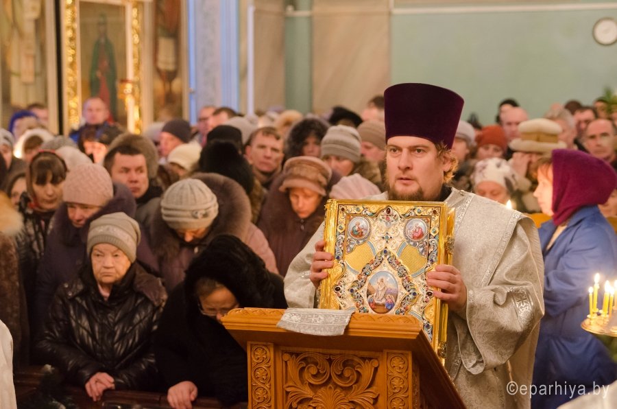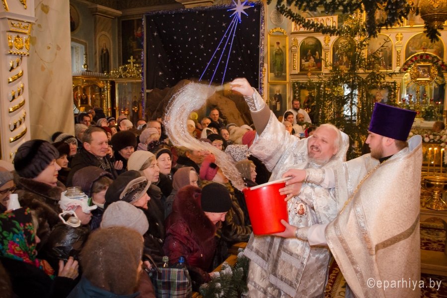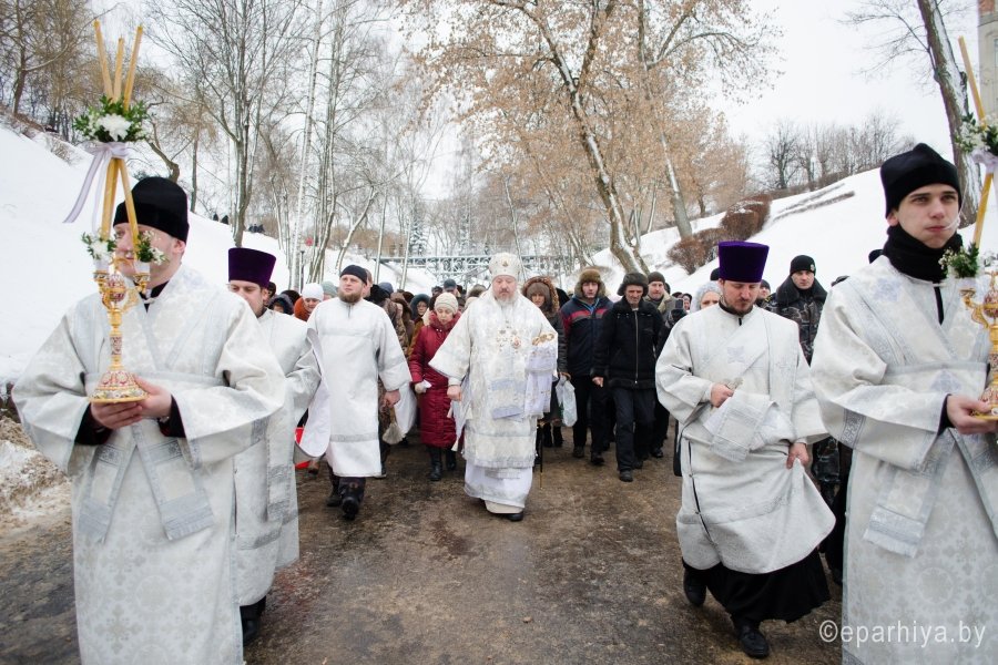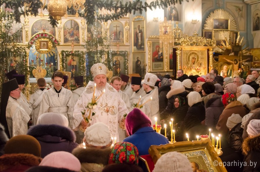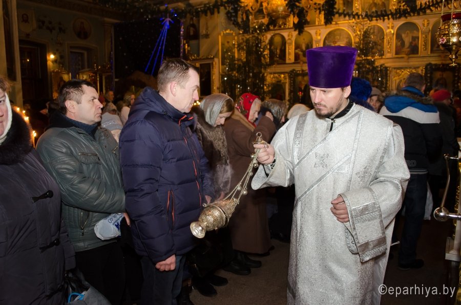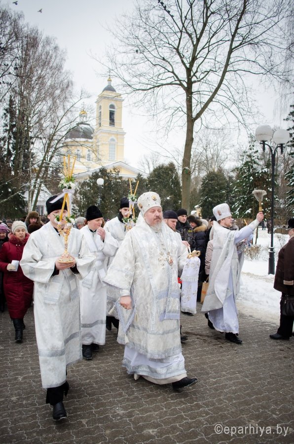 19 января 2016 года, в праздник Крещения Господа Бога и Спаса нашего Иисуса Христа, Преосвященный Стефан, епископ Гомельский и Жлобинский, совершил праздничную литургию в кафедральном Свято-Петро-Павловском соборе города Гомеля. Преосвященному сослужили: секретарь Гомельской епархии протоиерей Георгий Алампиев и духовенство собора. По завершении Литургии Владыка вместе с духовенством совершил чин Великого освящения воды и возглавил Крестный ход к набережной реки Сож. Вместе с правящим архиереем в этот светлый крещенский день молилось множество прихожан, которые получили пастырское благословение. |