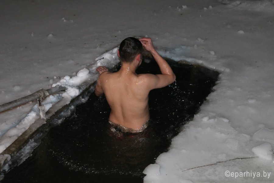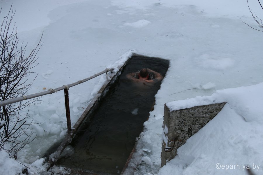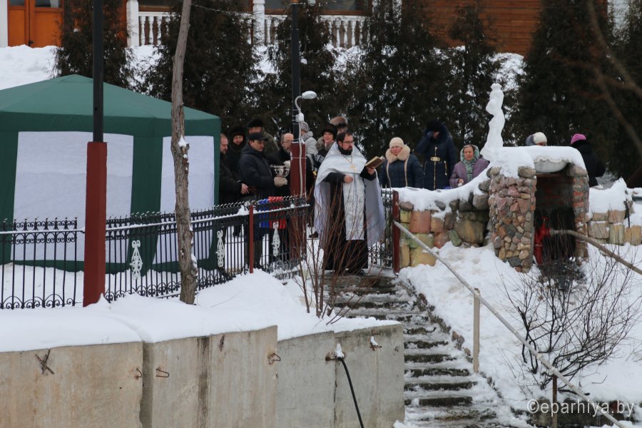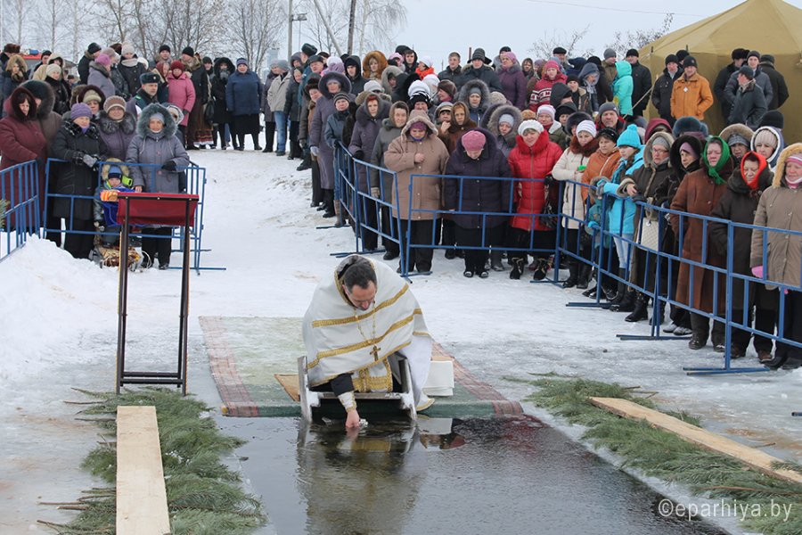 По окончании богослужения на Праздник Крещения Господня, 19 января, от храма Святителя Николая Чудотворца в городском поселке Корма состоялся традиционный Крестный ход на озеро Сырское, где уже 12 лет проходит Великое освящение воды. Здесь устраивается и прорубь, которая неизменно собирает множество желающих окунуться в день Святого Праздника. В этом году мероприятие получилось особенно насыщенным. Благодаря руководству района, сотрудникам отдела по ЧС и спасательной станции ОСВОД была проведена большая подготовительная работа, чтобы люди, пришедшие поучаствовать в празднике, в этот морозный день чувствовали себя комфортно, безопасно и были в хорошем настроении. В Беларуси День Спасателя также отмечается 19 января. Кормянский отдел по ЧС и служба спасения на водах в полном составе присоединились к празднованию. Первым сказал проповедь о Празднике Крещения Господня, о смысле Богоявления, о том, как правильно воспринимать такой дар от Господа, как святая вода, настоятель храма Святителя Николая Чудотворца в г.п. Корма священник Виталий Лехнович. Затем был отслужен водосвятный молебен. По окончании освящения воды к присутствующим обратился председатель Кормянского райисполкома А.А. Ясонов. Он поздравил в первую очередь всех верующих с православным праздником, а так же спасателей с их профессиональным. Пожелал всем крепости духа, бодрости, здоровья. Алексей Александрович выразил уверенность, что нынешнее мероприятие несомненно объединяет всех жителей Кормянщины, укрепляет в вере, дарит силы и радость. Слова поздравления высказал и начальник Кормянского отдела по ЧС Ю.А. Шугаев. После чего попросил священника благословить личный состав отдела и окропить освященной водой не только сотрудников, но и спецтранспорт. Затем спасатели показали собравшимся на берегу озера зрителям, как оказывается помощь людям в случае провала под лед. Они же поставили для желающих окунуться отапливаемые палатки, щедро кормили собравшихся вкусной кашей и согревали чаем. По окончании официальной части празднования, самые смелые мужчины, женщины, молодежь, даже несколько детей, осеняя себя крестным знамением, начали окунаться в прорубь. И до самого позднего вечера не прекращался поток желающих проверить себя на силу духа и крепость веры. В течение более чем шести часов священник также находился с сотрудниками МЧС у проруби, общался с верующими, отвечал на многочисленные вопросы, благословлял тех, кто шел окунаться, и окроплял освященной водой тех, кто пришел для поддержки своих родных и друзей. 18 января в Православной Церкви день Навечерия Крещения Господня, или, Крещенский сочельник. В храмах Гомельской епархии в этот день был совершен чин великого освящения воды: После Божественной Литургии в храме святого Архангела Михаила был совершен чин великого освящения воды. Водоосвящение называется великим по особенной торжественности обряда, проникнутого действительным освящением самого естества воды через погружение в нее Бога во плоти. Затем протоиерей Игорь Ольшанов поздравил верующих с сочельником и наступающим праздником Богоявления: «Сердечно поздравляю всех вас с праздником и желаю в душевном мире и радости встретить святой день Богоявления». До позднего вечера тянулась вереница людей к источникам со Святой водой и специально подг