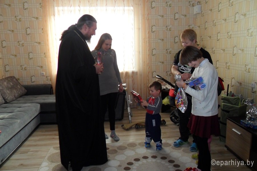 21 февраля 2016 года по благословению Преосвященнейшего Стефана, епископа Гомельского и Жлобинского, настоятель прихода храма Святого благоверного князя Александра Невского в г.Гомеле протоиерей Владимир Силенко посетил детский дом семейного типа семьи Таболич. Священник поздравил всех с праздниками Рождества Христова и Крещением Господним и передал подарки от Владыки и сладостями от прихожан храма. Ребята вместе с мамой с большой охотой показали гостям свой большой и уютный дом. И, как уже заведено в этом доме, угостили всех чаем. |