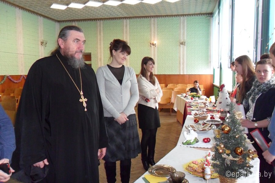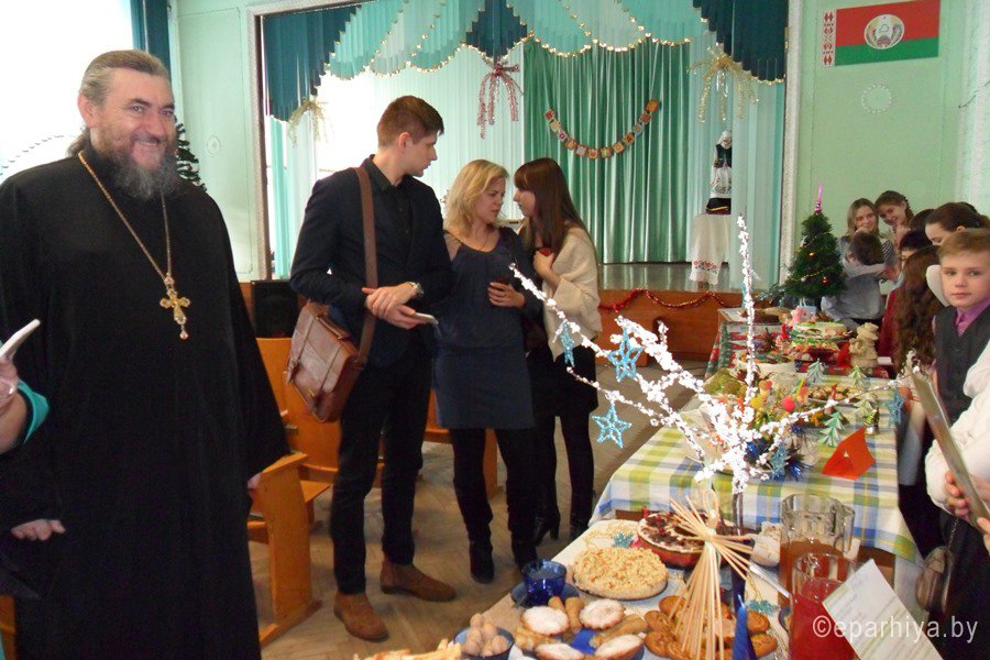 В рамках Рождественских встреч 21 января 2016 года в актовом зале ГУО «Средняя школа № 4 им.В.А.Маркелова г.Гомеля» прошел конкурс «Рождественские блюда». По благословению Преосвященнейшего Стефана, епископа Гомельского и Жлобинского, в мероприятии в качестве члена жюри принял участие настоятель прихода храма Святого благоверного князя Александра Невского в г.Гомеле протоиерей Владимир Силенко. Священник поздравил присутствующих с праздниками Рождества Христова и Крещением Господним, пожелал добра и мира в наступившем 2016 году. После концертной программы, подготовленной учащимися школы, были продемонстрированы рождественские блюда. В конкурсе приняли участие представители 1-11 классов. Все участники подошли к делу очень ответственно: вместе с родителями и классными руководителями старательно готовились к конкурсу. Можно было не только посмотреть на оформление, узнать рецепт приготовления того или иного блюда, но и попробовать его. Строгое жюри оценивало красочность оформления, эстетичный вид, оригинальность названия. Жюри очень трудно было выбрать победителей конкурса, ведь все блюда были по-своему оригинальны, красивы, сделаны с любовью. Поэтому были определены победители конкурса в разных номинациях. Конкурс «Рождественские блюда» продемонстрировал, сколь неисчерпаема детская фантазия, сколь талантливы ученики. |