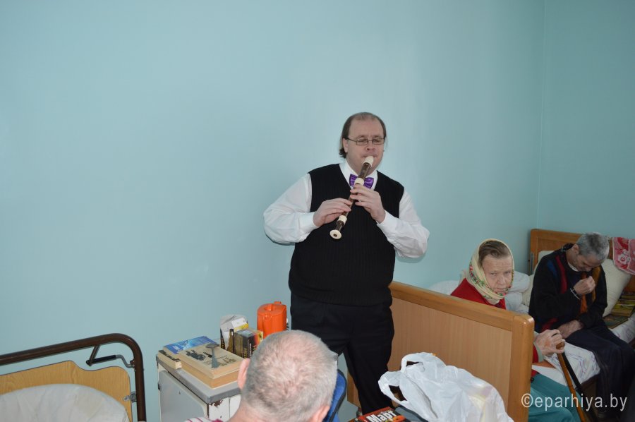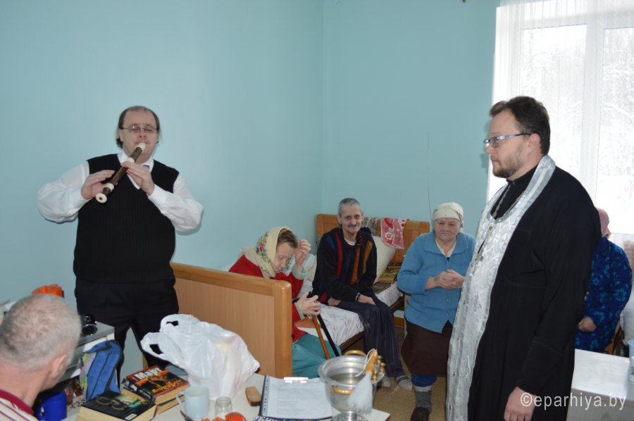 18 января в г. Речица, после окончания вечерней службы в Свято-Успенском соборе, все прихожане крестным ходом пошли на реку Днепр, для участия в молитве, через которую освящается «все водное естество». Чин освящения воды провёл настоятель прихода Свято-Успенского собора, протоиерей Алексий Пешко. Окунание в ледяные проруби не является обязательным для церковной традиции. «Организм, тело — это сосуд души, и его, конечно, следует беречь. И поэтому люди, которые никогда не моржевали, не окунались в ледяные проруби, могут навредить себе, может начаться, например, воспаление легких или возникнуть острая аритмия», сказал священник. Он отметил, что только подготовленные люди продолжают древнюю традицию, подражая крещению в водах реки Иордана Иисуса Христа. Крещенская вода употребляется для укрепления духовных сил и здоровья, ею окропляют жилища. Верующие относятся к освященной воде как к святыне и пьют ее в течение всего года до следующего праздника. 19-21 января празднование продолжилось в г. Речице. Это заключалось не только в том, что все верующие устремились в храмы вознести хвалу Богу в молитвах, но и в том, что священнослужители Речицких храмов в сопровождении сёстр милосердия, из сестричества в честь великомученицы Татианы, посетили медицинские учреждения города и с пением тропаря Крещения Господня, окропили святой водой все палаты с пребывающими в них больными, а также служебные и другие помещения. В каждом отделении священники поздравляли всех с праздником, желали больным скорейшего выздоровления, а персоналу успехов в их нелёгком труде. 20 января, протоиерей Роман Пешко, священнослужитель прихода Свято-Успенского собора в г. Речице, посетил больницу в г.п. Заречье, где поздравил с праздником больных, находящихся там в палатах сестринского ухода, а также весь медицинский персонал больницы и окропил их святой водой. И конечно же не обошлось без музыкального подарка. Дмитрий Иванович Анисимов исполнил на флейте задушевные музыкальные произведения для всех присутствующих. |