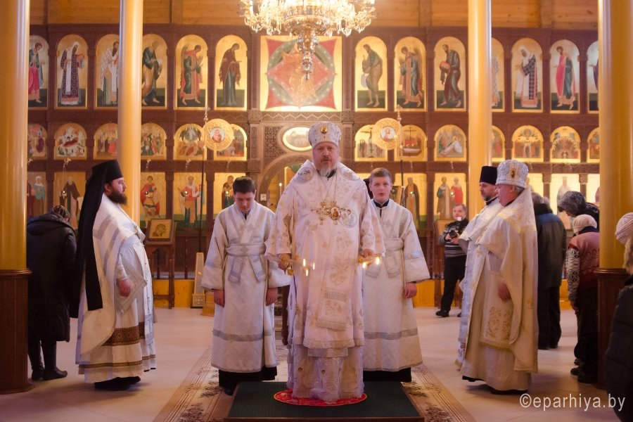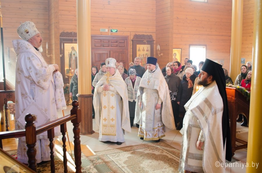 23 января 2016 года в день памяти свт. Григория, еп. Нисского. Прп. Дометиана, еп. Мелитинского. Прп. Маркиана пресвитера. Прп. Павла Комельского (Обнорского). Свт. Феофана, Затворника Вышенского. Прп. Антипы Валаамского (Афонского). Блж. Феозвы диаконисы, сестры свт. Григория Нисского. Прп. Макария Писемского. Прп. Пахомия Кенского. Сщмч. Зиновия пресвитера. Сщмч. Петра пресвитера. Сщмч. Анатолия, митр. Одесского, преосвященный Стефан, епископ Гомельский и Жлобинский, совершил Божественную Литургию в храме преподобного Серафима Саровского в городе Жлобине. Владыке сослужил благочинный Жлобинского благочинного округа протоиерей Василий Пилипенко, настоятель прихода и духовенство Гомельской епархии. По окончании богослужения Владыка обратился к молящимся со словом назидания, пожелав всем помощи Божией, поздравил причастников с принятием Святых Христовых Таин и преподал верующим архипастырское благословение, благословив каждого святым образом. |