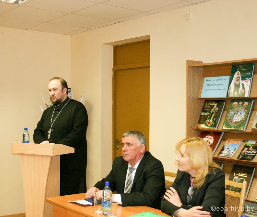 26 января библиотекари колледжей и лицеев Гомельской области изучали опыт работы библиотеки Жлобинского государственного профессионально-технического колледжа по теме: «Вечные ценности православия…». Работа по духовному воспитанию учащихся на православных традициях в Жлобинском колледже ведется уже много лет. Здесь внимание уделяется и сбору материалов по истории церковной жизни района. В этом деле учебное заведение тесно сотрудничает с местным благочинием Гомельской епархии, центральной районной библиотекой имени Н.К. Крупской, краеведами. В числе почетных гостей колледжа был уроженец Жлобина митрополит Нижегородский и Арзамасский Георгий (Данилов), который подарил библиотеке учебного заведения большое собрание духовной литературы. Частые гости в колледже – духовенство жлобинского благочиния. В последние два года эту эстафету перенял клирик Свято-Троицкого собора иерей Павел Кулиш. Он также принял участие в семинаре, рассказав о жизни своего прихода, отметив важность духовного роста для каждого человека. Об истории развития Православия на Жлобинщине рассказал сотрудник районной газеты "Новы дзень", член Церковно-исторической комиссии Гомельской епархии Николай Шуканов. На семинаре также выступили директор колледжа Николай Алейник, библиотекарь учебного заведения Людмила Жичко, методист Гомельского государственного областного учебно-методического центра профессионального образования Любовь Фещенко, библиотекарь центральной районной библиотеки имени Н.К. Крупской Елена Федоренко. |