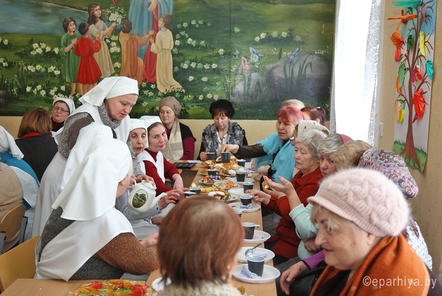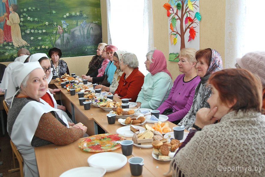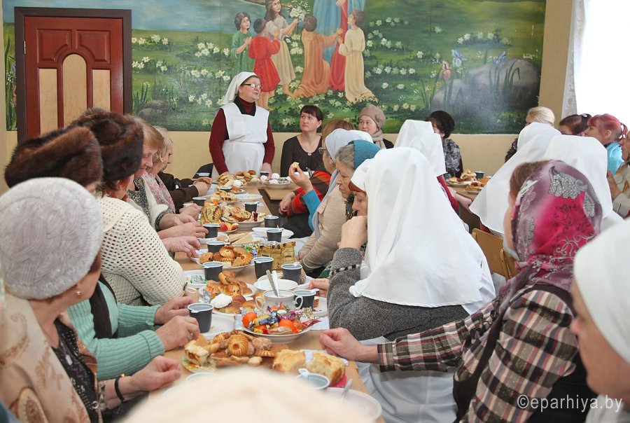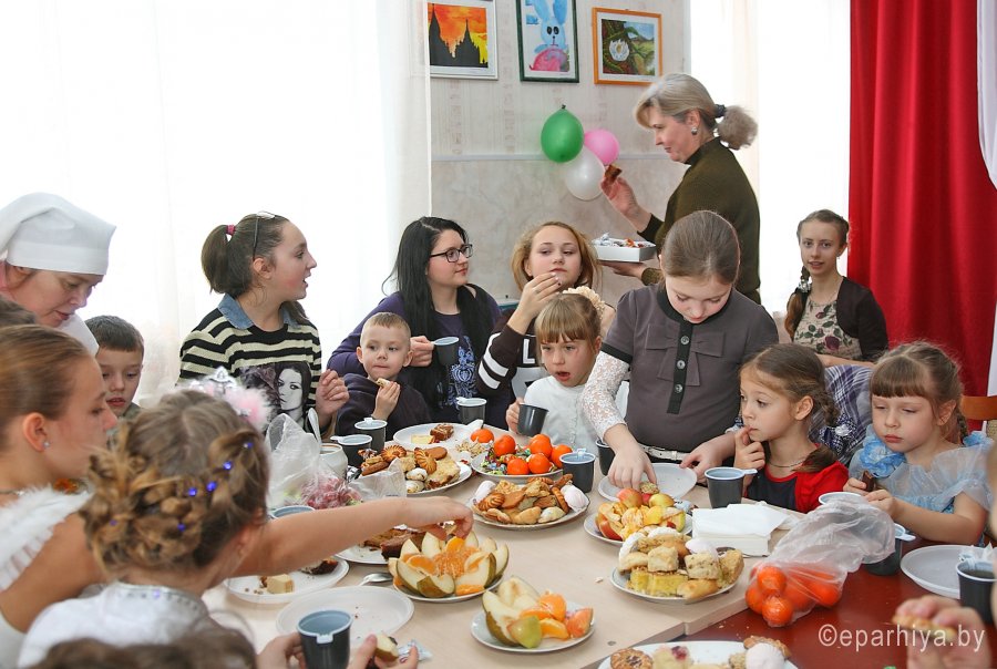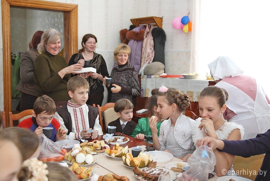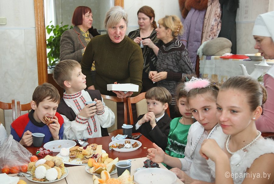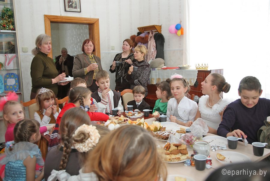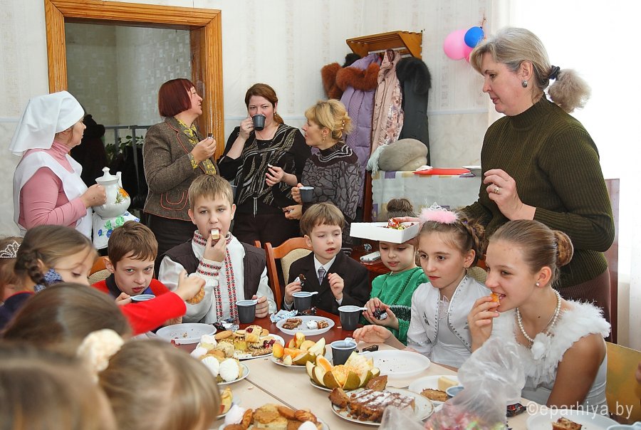 17.01.2016 г приход храма святителя Василия Великого г. Жлобина принимал гостей. Воспитанники воскресных учебно-воспитательных групп при храме показали Рождественские представление для людей, посещающих отделение дневного пребывания для граждан пожилого возраста при территориальном центре социального обслуживания населения Жлобинского района. На представление были приглашены и сестры из сестричества милосердия в честь иконы Божией Матери "Всецарица", которое действует на приходе. Настоятель прихода иерей Вячеслав Рябица в приветственном слове поблагодарил детей за подаренный праздник, выразил надежду на регулярность таких встреч и пригласил всех на чаепитие. За столом трудами сестер милосердия было по-христиански тепло и уютно. Старшая сестра сестричества Ольга Ивановна Разумович рассказала гостям о деятельности сестер милосердия, приглашала пожилых людей к сотрудничеству и совместной молитве. |