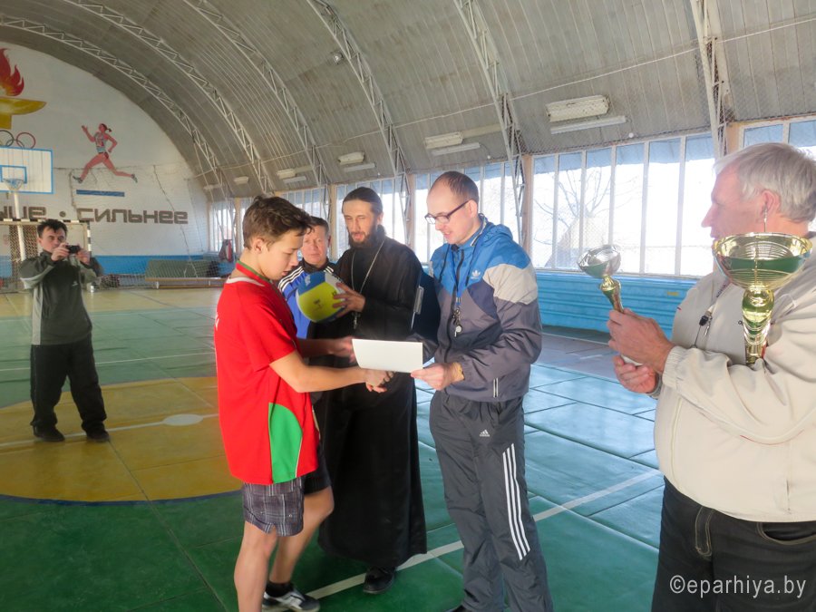 В рамках программы сотрудничества отдела образования, спорта и туризма Лоевского райисполкома и Лоевского благочиния 22 января 2015 г на базе ДЮСШ состоялся молодежный турнир по футболу, в котором приняли участие 5 команд из разных школ района. Не только испытать свои силы в этом активном виде спорта собралась здесь православная молодежь, но и ради дружеского общения. У ребят есть общие интересы – занятие спортом, стремление к здоровому образу жизни. Победителем соревнования стала команда ГУО «Малиновская базовая школа», она завоевала кубок чемпионата. Все команды получили Грамоты и футбольные мячи. |