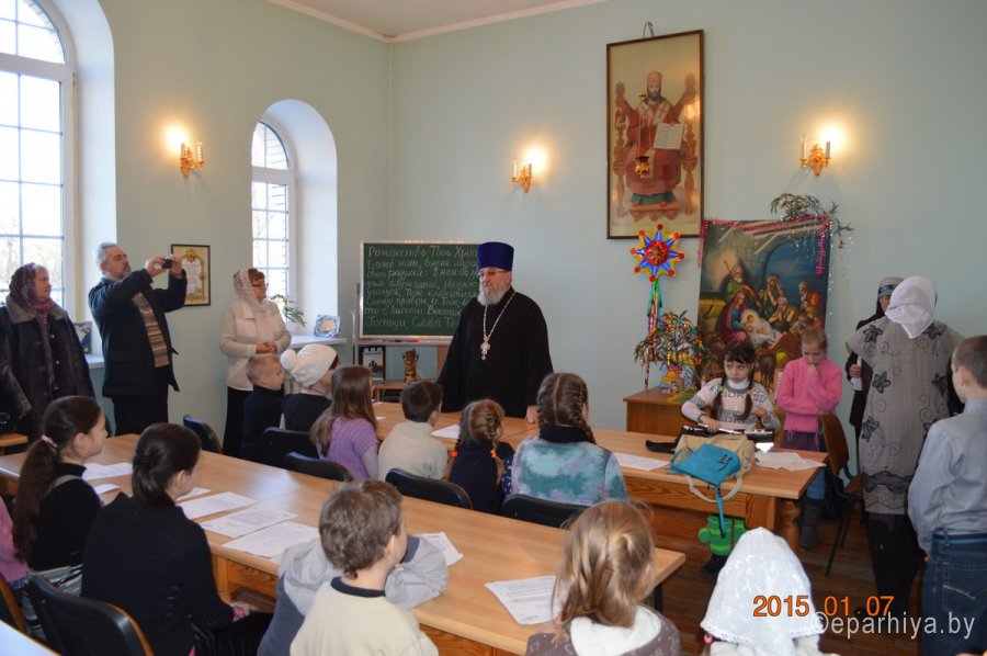 Рождественские праздники по праву считаются одними из наиболее масштабных, отмечаемых на всех приходах. Ряд рождественских мероприятий прошел и в Речицком благочинном округе Гомельской епархии. Так, 7 января, непосредственно в праздник Рождества Христова, в Свято-Успенском соборе города Речицы прошло праздничное богослужение. Дети воскресной школы подготовили рождественские поздравления: читали стихи, пели колядки, играли на музыкальных инструментах. Настоятель храма, протоиерей Алексий Пешко, поздравил детей и их родителей с праздником Рождества Христова, пожелав им духовных и телесных сил, а также поблагодарил воспитанников Воскресной школы за праздничное выступление и за ту радость, светлые чувства, подаренные детьми. После концерта дети получили рождественские подарки. На следующий день, 8 января, настоятель Свято-Покровского храма города Речицы, протоиерей Николай Ефименко, побывал в Речицком интернате для детей с физическими отклонениями. Воспитанники интерната показали Рождественское представление в честь праздника. Протоиерей Николай вместе с заместителем главного врача Речицкой центральной районной больницы Натальей Валерьевной Николайчик, поздравил с Рождеством Христовым воспитанников интерната и вручил подарки, собранные силами прихожан храма. 10 января в Речицком ГДК состоялся праздничный Рождественский бал для учащихся учреждений образования города. Организатором данного мероприятия выступил Речицкий отдел образования, спорта и туризма. Данное мероприятие нацелено на объединение духовно-нравственных отношений между молодыми людьми, обществом и церковью. На балу присутствовал благочинный Речицкого округа, настоятель Свято-Успенского собора, протоиерей Алексий Пешко, который поздравил всех присутствующих с Рождеством Христовым, пожелал молодежи Божьей помощи в этом богоугодном деле и вручил памятные подарки. |