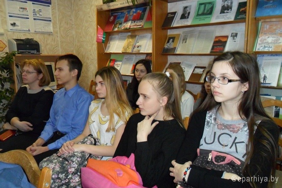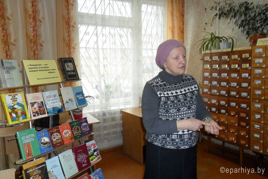 10 февраля 2016 года в рамках совместного проекта библиотеки-филиала № 14, храма Святого благоверного князя Александра Невского в г.Гомеле и ГУО «Средняя школа № 15 г.Гомеля» по духовно-нравственному просвещению подростков «Через Книгу - к духовности» в читальном зале библиотеки прошел урок православного этикета «Сложные простые вещи». Мероприятие посетила преподаватель воскресной школы прихода Игнатович Ирина Валентиновна. В разговоре с учениками педагог объяснила детям значение этикета в общении людей, приводя яркие примеры из истории, этнографии. Также преподаватель рассказала о различии в этикете разных народов, познакомила учащихся с этическими нормами взаимоотношения полов. |