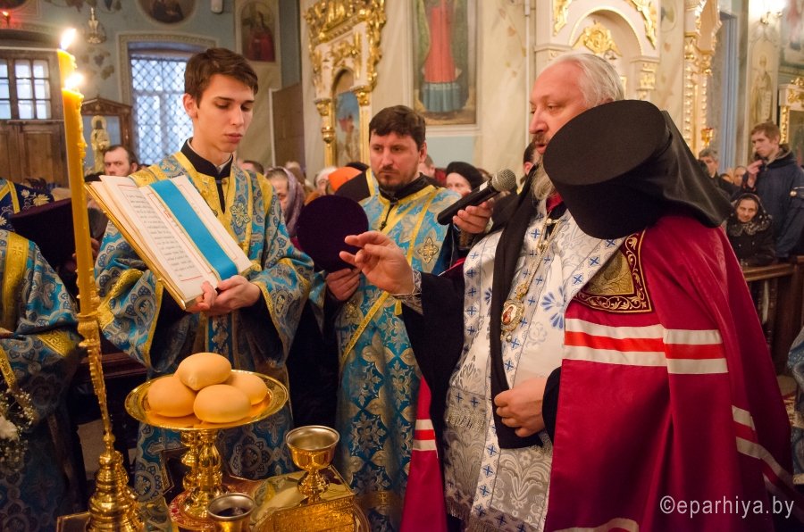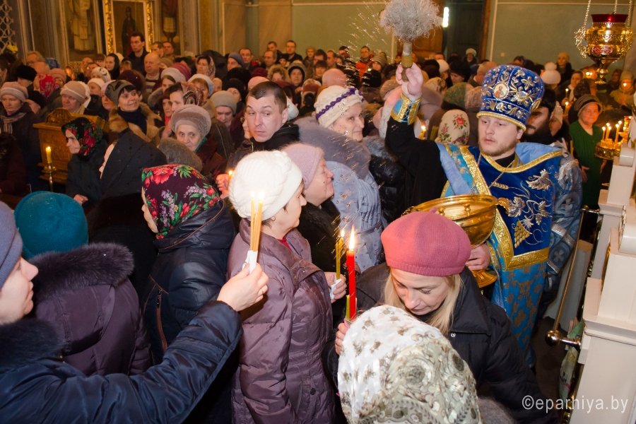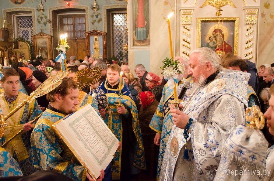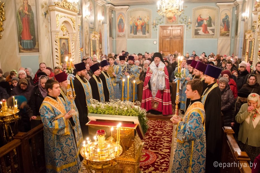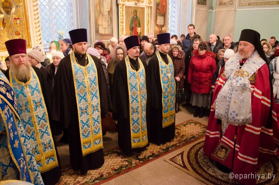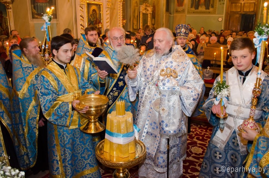 14 февраля 2016г., в канун праздника Сретения Господня, Преосвященнейший Стефан возглавил всенощное бдение в Свято-Петро-Павловском кафедральном соборе г.Гомеля. Преосвященному сослужили: секретарь Гомельской епархии протоиерей Георгий Алампиев и духовенство собора. За богослужением Владыка совершил чин освящения свечей. По окончании богослужения Владыка обратился к прихожанам со словами Архипастырского назидания. |