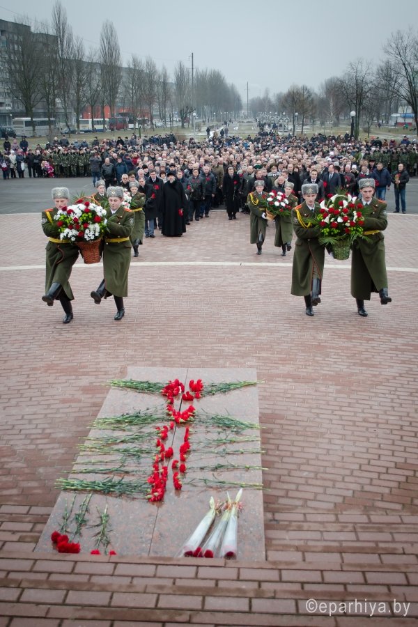 Преосвященный Стефан, епископ Гомельский и Жлобинский, в сопровождении председателя отдела по взаимодействию с вооруженными силами и правоохранительными органами протоиерея Игоря Ольшанова, принял участие в митинге-реквиеме, посвященном 27-ой годовщине вывода Советских войск из Афганистана. В ходе мероприятия, у памятника погибшим воинам-интернационалистам, Преосвященный возложил цветы, а так же пожелал воинам-интернационалистам мира, добра и благополучия от лица духовенства епархии. Представители городской власти, главы администраций города, представители молодежных и общественных организаций также возложили цветы к мемориалу. Обращаясь к ветеранам боевых действий в Афганистане, заместитель председателя городского исполнительного комитета по социальным вопросам Оксана Константиновна Руденок поблагодарила их за мужество, стойкость и вклад в патриотическое воспитание молодёжи. Председатель Гомельской областной организации общественного объединения «Белорусский союз ветеранов войны в Афганистане» Михаил Григорьевич Жукевич отметил, что афганские события не бесследно прошли для нашей земли: «В них приняли участие более пяти тысяч наших земляков. Более 120 из них не вернулись на Родину.» Предваряла акцию поминальная службой в Иверском храме г.Гомеля, где собрались ветераны-однополчане. По благословению Владыки 15 февраля во всех храмах были отслужены заупокойные литии. |