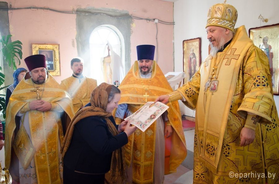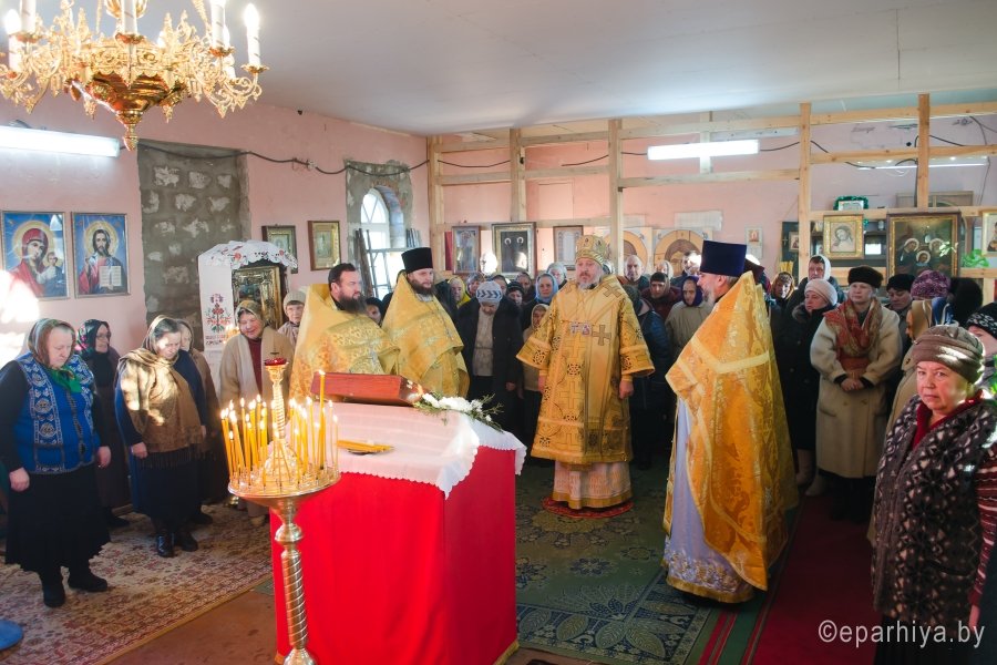 18 февраля 2016г., в день памяти свт.Феодосия Черниговского, Преосвященнейший Стефан возглавил Божественную литургию в одноименном храме д.Новая Буда. Святитель Феодосий Черниговский особое место занимает в сердце Преосвященного Стефана, так как юношеские годы Владыки прошли под святительским амофором этого святого. Преосвященному сослужили: секретарь Гомельской епархии протоиерей Георгий Алампиев, благочинный Гомельского районного благочинного округа протоиерей Сергий Леоньков и духовенство прихода. Владыка преподнес в дар храму для молитвенного поклонения верующих частицу мощей святителя Феодосия Черниговского. В своем пастырском слове Владыка на примерах из собственной жизни рассказал о тех благодеяниях и чудесах, которые проистекали от раки святителя и благословил прихожан и настоятеля далее трудиться во Славу Божию на строительстве церкви. |
