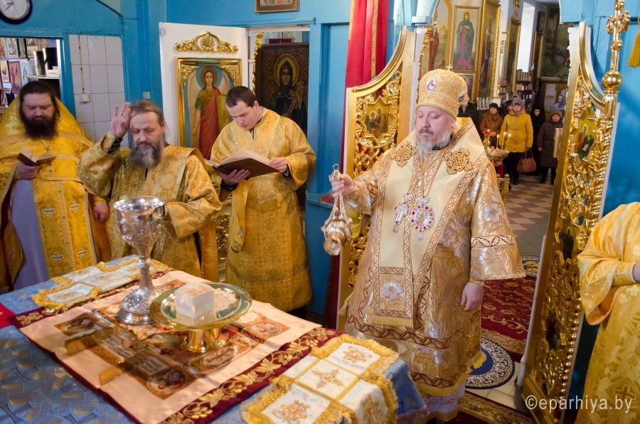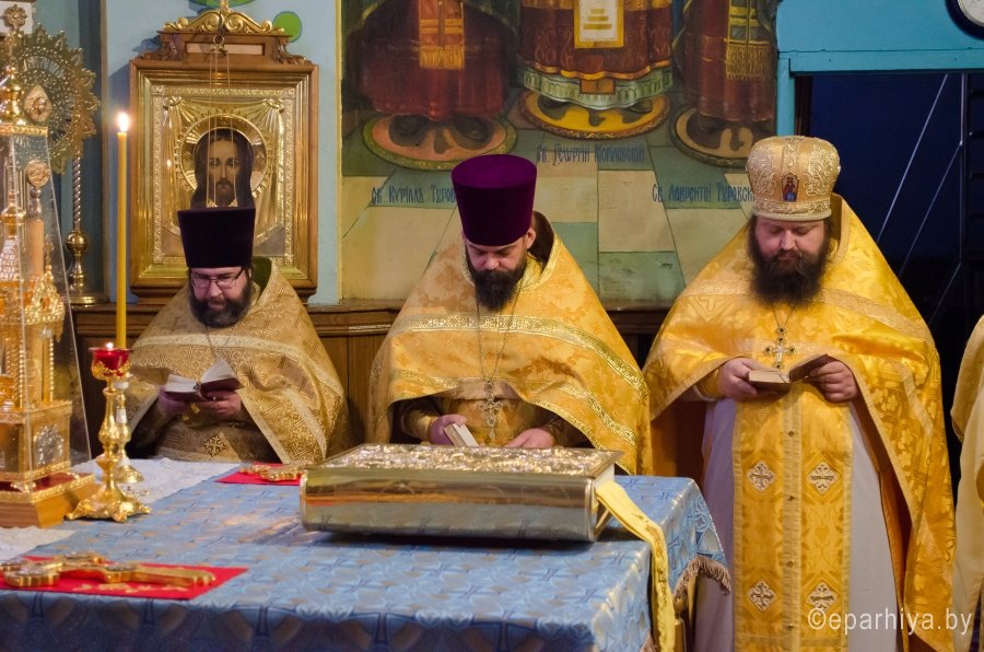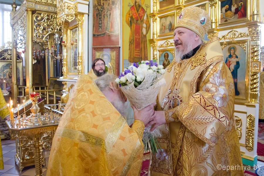 19 февраля 2016г., в день памяти преподобного Варсонофия Великого, Преосвященный Стефан, епископ Гомельской и Жлобинский, в сослужении благочинного монастырей Гомельской епархии архимандрита Амвросия (Шевцова) возглавил Божественную литургию в Свято-Иоанно-Кормянском женском монастыре д.Корма Добрушского района. За Божественной литургией возносились молитвы о здравии Патриаршего экзарха всея Беларуси митрополита Павла, по случаю Дня его рождения. Также старшего священника обители архимандрита Варсонофия, в День Тезоименитства. По окончании богослужения владыка обратился со словами поздравления с Днем Тезоименитства к архимандриту Варсонофию (Степанцову). За богослужением молились игуменья Платонида — настоятельница Свято - Иоанна - Кормянского женского монастыря и игуменья Вера — настоятельница Свято - Тихвинского женского монастыря с сестрами. |