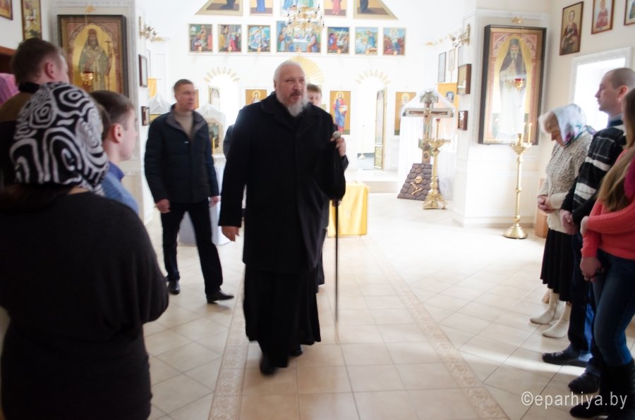 6 марта 2016г. Преосвященнеший Стефан в сопровождении секретаря Гомельской епархии протоиерея Георгия Алампиева, совершил рабочий визит в храм св.прп. Никиты Исповедника д.Поколюбичи, Гомельского районного благочиния. Настоятель храма иерей Александр Алехнович ознакомил Владыку с делами на приходе. |