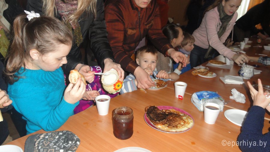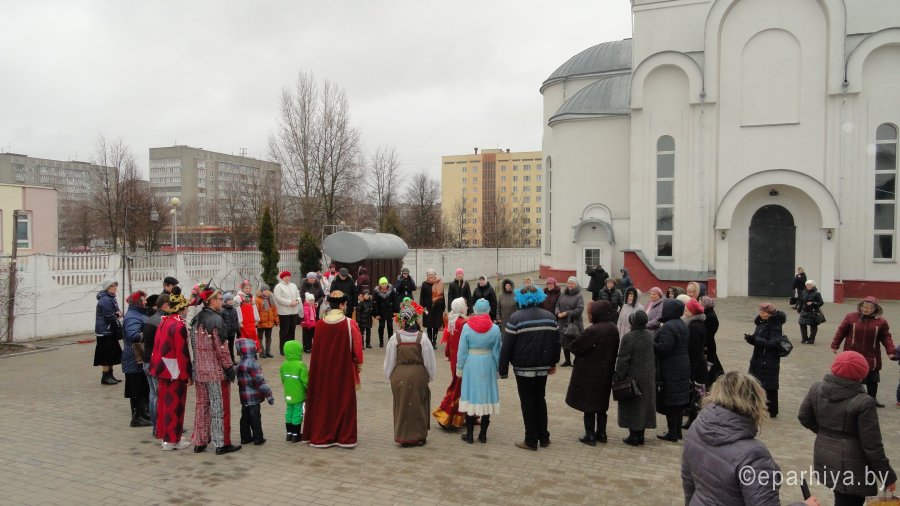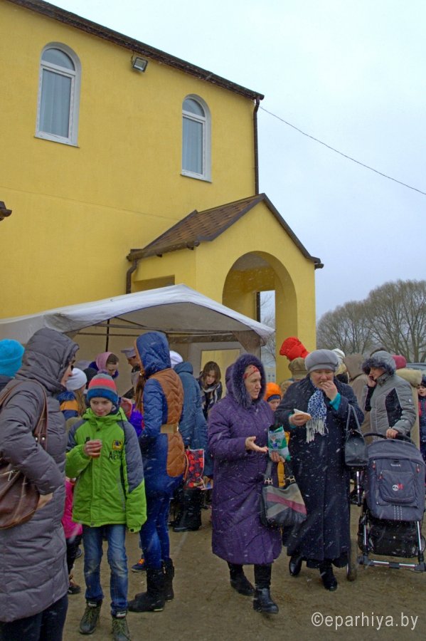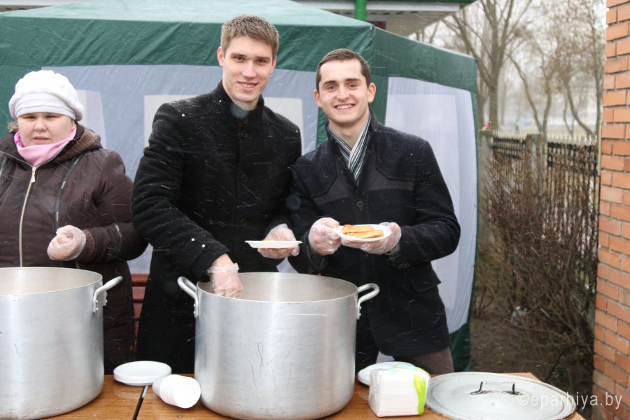 13 марта 2016 года последний день перед началом Великого поста – Прощёное воскресенье. В этот день, традиционно, в храмах г.Гомеля проводятся благотворительные ярмарки, мероприятия, в ходе которых дети и взрослые могут попробовать вкусных блинов и выпить горячего чая. Для детей в этот день проводятся игры и конкурсы. На площадке возле храма святого Архангела Михаила г. Гомеля после Божественной литургии состоялось благотворительное мероприятие, посвященное прощённому воскресенью. Началом мероприятия послужила молитва и.о. ключаря Свято-Петро-Павловского кафедрального собора иерея Алексея Сергеева и освящение блинов. Каждый смог отведать пышных блинов и горячего чая, а также насладиться праздничной программой, подготовленной волонтерами храма, Свято-Петро-Павловского кафедрального собора и военно-транспортного факультета УО «БелГУТ». Для детей была организована развлекательная игровая программа: конкурсы и эстафеты, задания на смекалку и сообразительность, и, конечно, сладкие призы и подарки. А для тех, кто посмелей, организаторы мероприятия предложили прогулку на лошади вокруг храма. «И, несмотря на то, что зима никак не хочет сдавать свои позиции, я хочу пожелать всем нам тепла в душе. Дарите друг другу тепло ваших сердец, простите и да будете прощены» – с такими словами обратился к прихожанам протоиерей Игорь Ольшанов, настоятель храма святого Архангела Михаила в г. Гомеле. Также благотворительные мероприятия прошли в храмах Иверской иконы Божией Матери г.Гомеля, св.вмч.Пантелеимона г.Гомеля и Спасо-Преображенском храме г.Гомеля. |