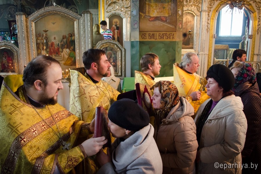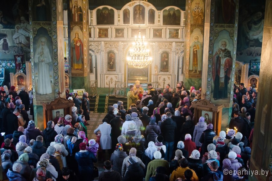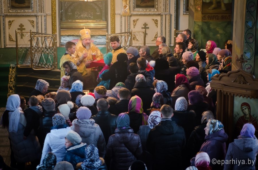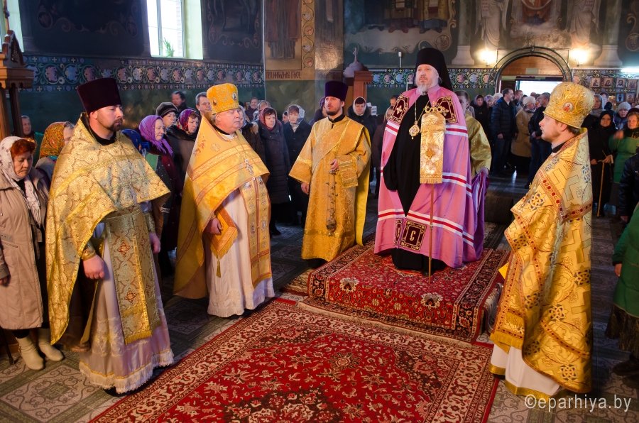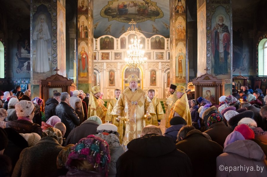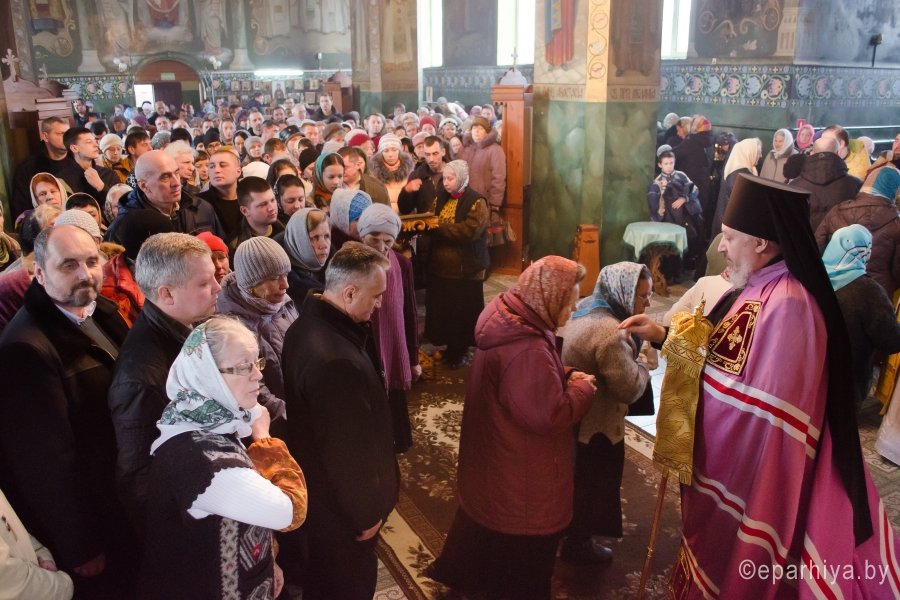 Воскресенье, которое предваряет Великий пост, иначе называется Прощенное, посвящено изгнанию из Рая прародителей, Адама и Евы, когда произошло страшное катастрофическое событие грехопадения. Человек отпал от Бога. В неделю сыропустную 13 марта 2016г. Преосвященнейший Стефан епископ Гомельский и Жлобинский возглавил Божественную Литургию в соборе Святой Живоначальной Троицы г.Жлобина. Преосвященному сослужили: секретарь Гомельской епархии протоиерей Георгий Алампиев, благочинный Жлобинского благочинного округа протоиерей Василий Пилипенко и духовенство собора. По окончании богослужения Владыка совершил вечерню с чином прощения. |