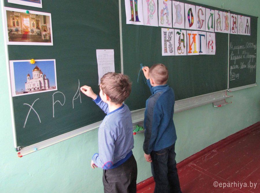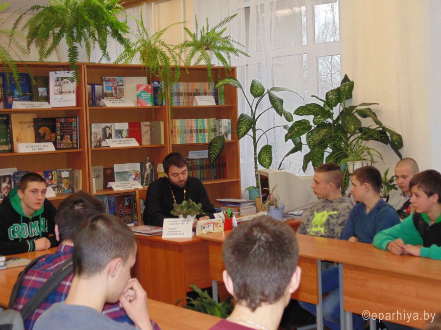 В Добрушском благочинном округе прошел ряд мероприятий, приуроченных Дню православной книги. 3 марта 2016 года, в рамках празднования Дня православной книги, в библиотеке Добрушского государственного профессионального политехнического лицея состоялась выставка-беседа «Ты выбираешь: молодым о смысле жизни», которую провел иерей Иоанн Бухенко, настоятель храма Успения Пресвятой Богородицы деревни Жгунь Добрушского благочиния. Речь шла о том, как не потерять себя в изобилии и разнообразии современной жизни, и как православная книга помогает найти ответы на главнейшие вопросы человечества: «В наше время технический разум берет верх, и люди чаще задаются вопросом «как это устроено», но забывают «для чего». Однако, несмотря на удобства и блага цивилизации, какая-то грусть присутствует в нас, чего-то нашей душе не хватает. Человек, испытавший полноту счастья, говорит: мгновенье остановись, мне больше ничего не надо. А мы с вами все время чего-то ищем. Почему так происходит? Ответ на этот вопрос можно найти в духовной литературе». Далее священник рассказал о разнообразии православной литературы. Ребята ознакомились с православными книгами, представленными на выставке районной библиотекой. Отец Иоанн передал в дар библиотеке лицея литературу, собранную Добрушским благочинием в рамках благотворительной акции «Подари православную книгу». 15 февраля 2016 года в «ГУО Тереховская СШ №1» для учеников 9 класса состоялся Час духовного разговора «Православная книга». Иеромонах Венедикт (Мажуко) рассказал ребятам о книгах, которые помогают понять Православие. 6 марта 2016 года в «ГУО Гимназия г. Добруша» состоялся конкурс школьных сочинений на тему «Моя православная книга». Победительницей стала шестнадцатилетняя Дарья Ковалюк. Девочку ожидает награда: грамота благочинного и православная книга в подарок. 6 марта 2016 года в детской учебно-воспитательной группе, организованной приходом храма святителя Николая Чудотворца города Добруша при «ГУО СШ №1 г. Добруша», прошел тематический урок «Изучаем церковнославянскую азбуку». Ребята познакомились с историей праздника, вспомнили равноапостольных Кирилла и Мефодия – авторов славянской азбуки, узнали, что первая типография в России была открыта по велению Ивана Грозного печатником-дьяконом Иваном Фёдоровым, чтобы через Слово Божие, пребывающее в Православной книге, благодать Божия распространялась на бóльшее количество людей. Заранее ребята раскрасили буквицы, витиеватые формы которых всем очень понравились. Из них они составили словосочетание «православная книга». Затем ученикам было предложено написать слова на церковнославянском языке. Они отлично справились с данным заданием! На мини-выставке духовно-нравственной литературы ребята отметили новые для себя книги, рассказали, какие книги они сами читают. 12 марта 2016 года силами выпускников православного факультатива «ГУО СШ №5 г. Добруша», для учащихся 5-х и 7-х классов было проведено Праздничное внеклассное мероприятие «Иван Федоров — первопечатник». К этому мероприятию ученики подготовили несколько кратких докладов с презентациями по теме. Был продемонстрирован документальный фильм, повествующий об истории появления и значении книгопечатания. Чтобы лучше почувствовать дух истории, ребята продемонстрировали сценку-диалог Иван