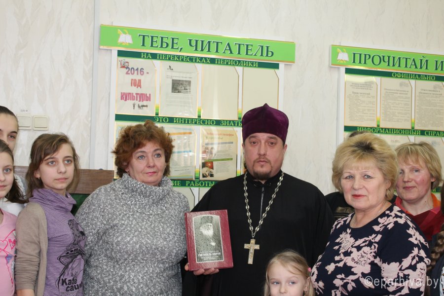 11 марта 2016 года настоятель прихода храма Святаго Духа в д. Кравцовка Гомельского района протоиерей Геннадий Морозов провел встречу с учащимися 7-10 классов Новогутской средней школы, приуроченную ко Дню православной книги. Встреча проходила в актовом зале школы, где вниманию школьников и учителей была представлена выставка православных книг. Священник рассказал ребятам о старинных церковных книгах, ответил на вопросы. Встреча прошла в теплой атмосфере, присутствующие поблагодарили о. Геннадия за проведенное мероприятие и выразили благодарность Гомельской епархии за проявленную инициативу по празднованию Дня православной книги. 14 марта 2016 года в День православной книги на приходе Святителя Николая Чудотворца в д. Романовичи Гомельского районного благочиния прошло мероприятие для учеников Романовичской СОШ. Ребята побывали на экскурсии в храме, где своими глазами увидели настоящие богослужебные книги, услышали их историю и смогли их потрогать, что вызвало особое восхищение в рядах. Экскурсию провел настоятель прихода иерей Николай Лобжа. С 7 по 13 марта 2016 в Гомельской районной центральной библиотечной системе прошел ряд мероприятий «Свет христианства», посвященный Дню православной книги. Выставки православной литературы, старинных икон, детских рисунков и многое другое были, в течение целой недели, предметом пристального внимания посетителей сельских библиотек. На мероприятия были приглашены священники Гомельского районного благочиния. Так например, протоиерей Петр Слепенок, настоятель прихода храма Вознесения Господня в д. Рудня Маримонова, провел беседу с юными читателями в Михальковской сельской библиотеке, а иерей Петр Прокопцов, настоятель прихода храма Рождества Пресвятой Богородицы в аг. Прибытки, рассказал о православии постоянным посетителям Климовской сельской библиотеки. Уникальные, старинные церковные книги были представлены на выставке в Сургановской сельской библиотеке. Приглашенный на мероприятие протоиерей Владимир Новиков, настоятель прихода храма Покрова Пресвятой Богородицы в аг. Еремино, рассказал присутствующим на встрече много интересного о православной книге. Живые дискуссии у священников состоялись с читателями в Брилевской и Новогутской сельских библиотеках. Туда соответственно были приглашены иерей Вячеслав Барсуков, настоятеля прихода храма Казанской иконы Божией Матери в аг. Мичуринская и иерей Павел Брагинец, настоятель прихода храма Вознесения Господня в аг. Новая Гута. Мероприятия, посвященные Дню православной книги, которые прошли в этом году в библиотеках Гомельского района, были объединенные общим названием «Свет христианства». И это очень символично, ведь прошедшие встречи позволили всем интересующимся лишний раз прикоснуться к тем драгоценным христианским святыням, которые так важны для человеческой души, которые освещают путь к Богу и дают силы жить по-христиански в сложное современное время. И важнейшая из этих святынь – книга. 10 марта 2016 года накануне Дня православной книги, в библиотеке Красненской средней школы состоялась встреча учеников 4-7 классов с настоятелем прихода храма Успения Пресвятой Богородицы в аг. Красное протоиереем Валерием Савельевым. Ученики познакомились с выставкой православной литературы, где смогли увидеть старинное издание
