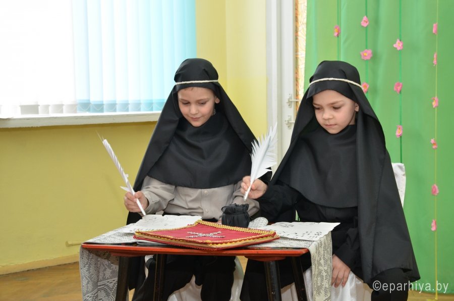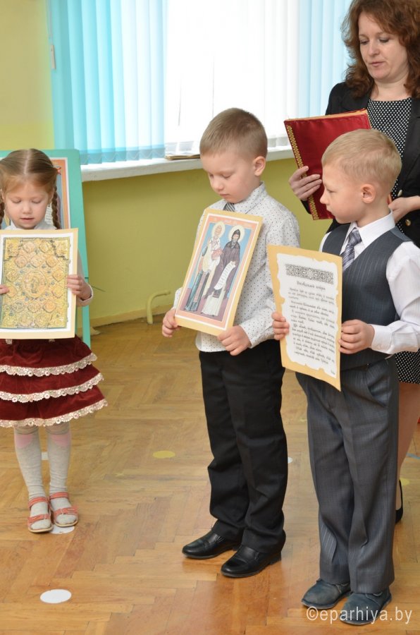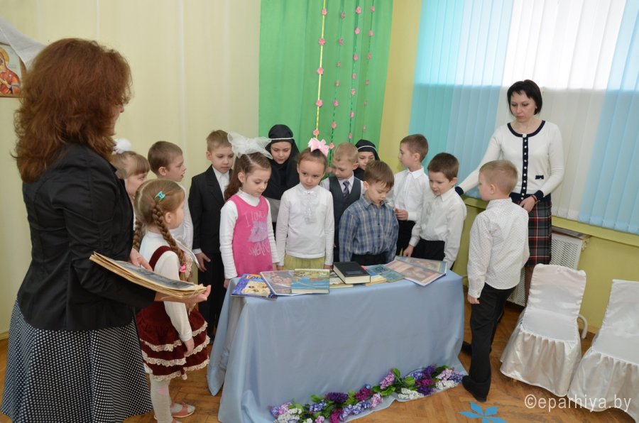 В рамках недели Православной книги клирик храма Преображения Господня г.Гомеля диакон Василий Коломиец 16 марта 2016 года посетил детский утренник в ясли-сад № 117 Светлячок г. Гомеля. Малыши, наряду с танцевальными номерами и традиционным чтением стихов, подготовили и показали присутствующим на празднике сценку о создателях славянской азбуки братьях Кирилле и Мефодии. В свою очередь отец Василий рассказал ребятам о православных книгах и о пользе чтения духовной литературы, о том, что такие книги имеют свой собственный праздник, который отмечается 14 марта и называется Днём Православной книги. Также к празднику все дети получили от священнослужителя детские евангелия, подготовленные специально к этому дню. Стоит сказать ещё и о том, что в ясли-саде № 117 появился православный иконостас, созданный совместными силами храма Преображения Господня г.Гомеля и администрацией учреждения образования. Иконы Спасителя, особо почитаемых святых образов Казанской Божией Матери и Николая Чудотворца, а также Архангелов Гавриила и Михаила, наших белорусских святых Манефы Гомельской и Иоанна Кормянского - стали частью иконостаса. |