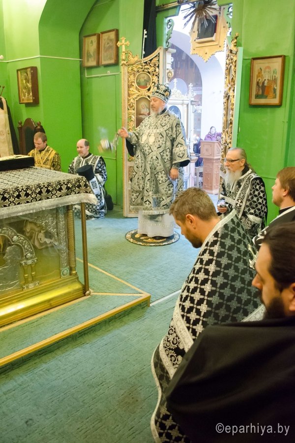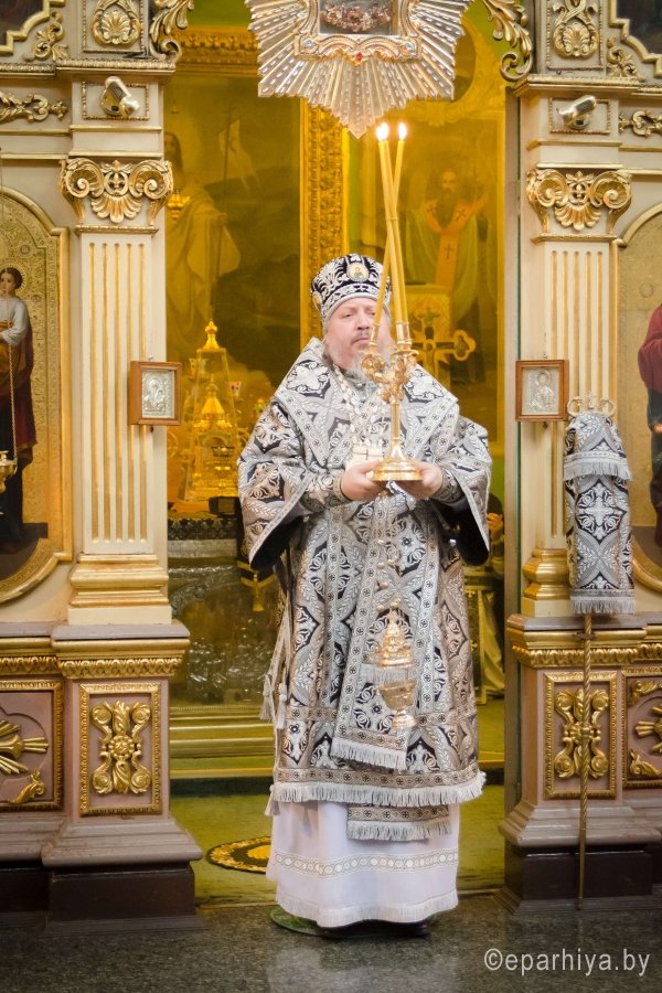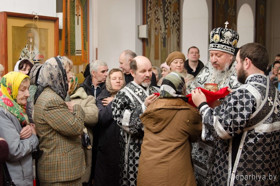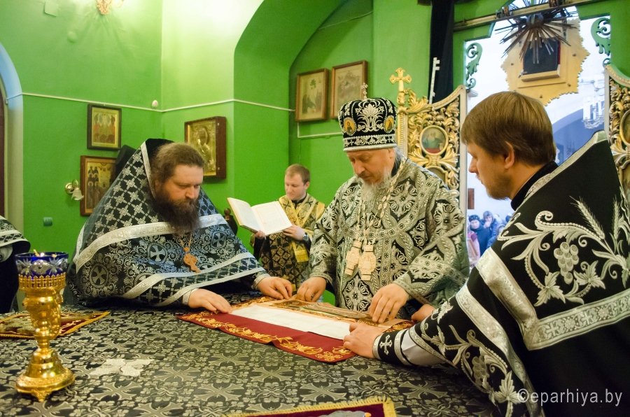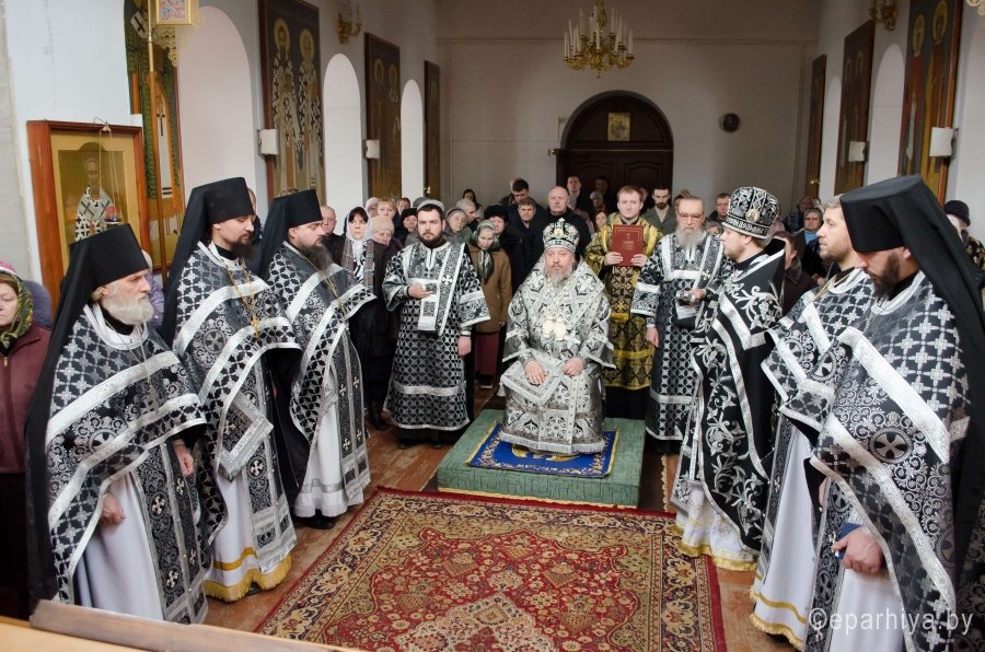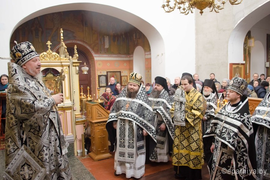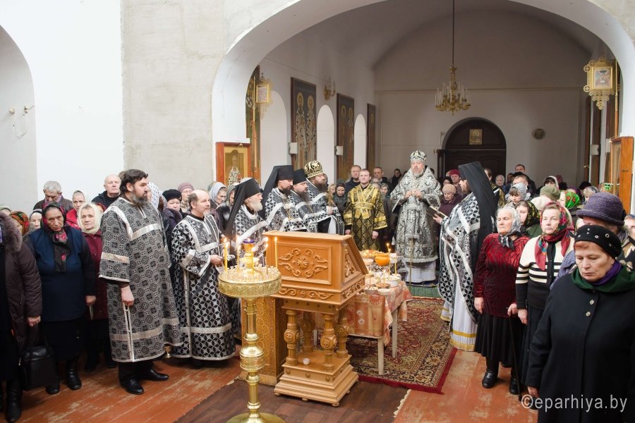 18 марта 2016г. Преосвященнейший Стефан возглавил Божественную литургию Преждеосвященных Даров в Свято-Никольском мужском монастыре г.Гомеля. Правящему архиерею сослужили: секретарь Гомельской епархии протоиерей Георгий Алампиев, наместник Свято-Никольского мужского монастыря г.Гомеля архимандрит Амвросий(Шевцов) и братия монастыря в священном сане. По заамвонной молитве епископ Стефан с сослужащим духовенством совершил уставное молебное пение великомученику Феодору Тирону с чином освящением колива. По окончании богослужения Владыка обратился к молящимся со словом назидания, пожелав всем помощи Божией, поздравил причастников с принятием Святых Христовых Таин и преподал верующим архипастырское благословение. |