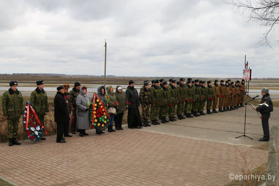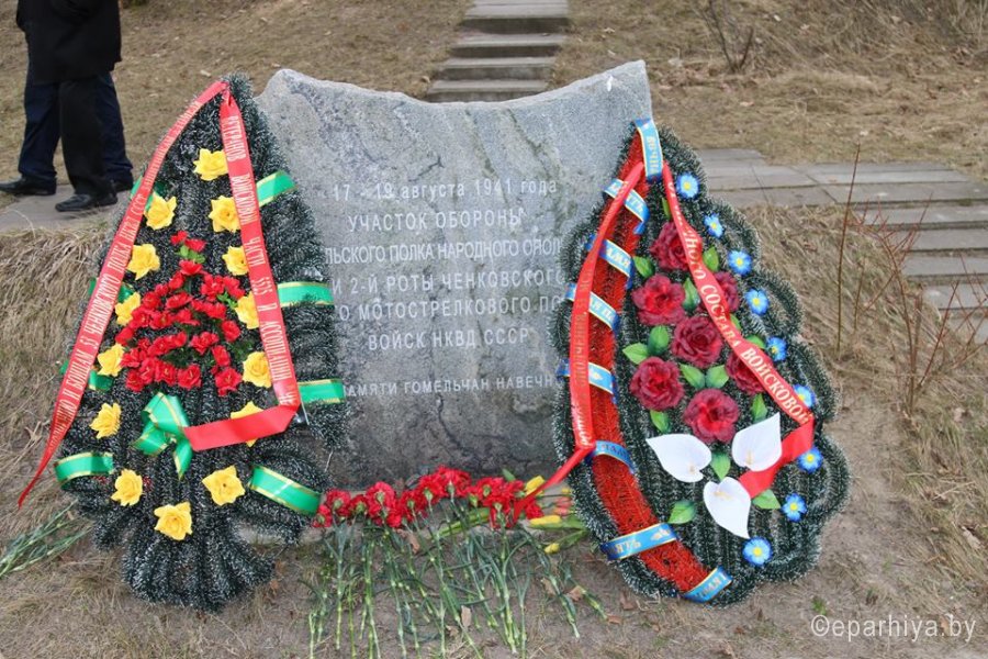 18 марта 2016 года в День 98-летия образования внутренних войск МВД Республики Беларусь в Поколюбичах Гомельского района у памятника воинам, погибшим в Великой Отечественной войне, собрались ветераны Великой Отечественной войны, войсковой части 5525 внутренних войск МВД Республики Беларусь, представители Гомельской епархии, воспитанники военно-патриотического клуба «Честь» при войсковой части 5525. «Мы собрались сегодня здесь, чтобы почтить память и склонить головы перед мужеством и стойкостью воинов Народного ополчения и 53-го Чёнковского мотострелкового полка войск НКВД СССР, которые в 1941 году обороняли рубежи нашей Родины на поступках к г. Гомелю. Хранить память о боевых подвигах наших соотечественников дело чести для нас с вами» – такими словами открыл митинг-реквием полковник А.В. Пипченко в/ч 5525. Светлую память погибших воинов почтили минутой молчания, после чего под залпы ружей собравшиеся возложили венки к мемориалу. «Нам дана короткая жизнь, но память об отданной за благое дело жизни вечна» – словами древнеримского философа Цицерона подытожил митинг настоятель храма святого Архангела Михаила в г. Гомеле руководитель отдела по взаимодействию с Вооруженными Силами и правоохранительными органами Гомельской епархии протоиерей Игорь Ольшанов. |