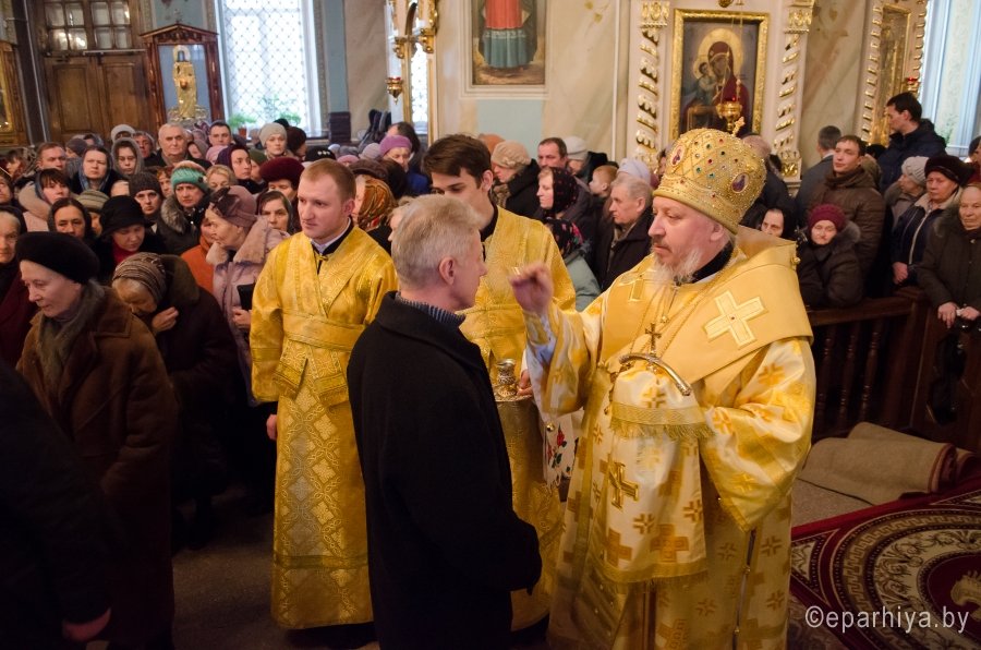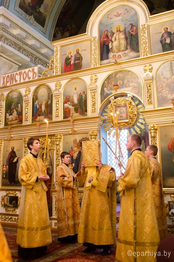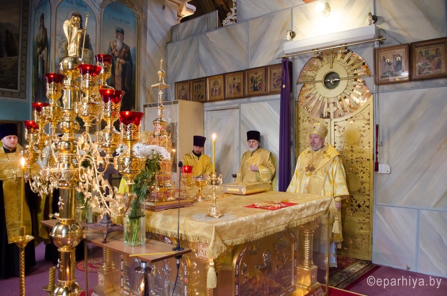 19 марта 2016г., в канун Недели 1-ой Великого поста. Торжества Православия. Преосвященнейший Стефан в сослужении секретаря Гомельской епархии протоиерея Георгия Алампиева и духовенства собора возглавил всенощное бдение в Свято-Петро-Павловском кафедральном соборе г.Гомеля. По окончании богослужения Владыка обратился к молящимся со словами Архипастырского назидания. |