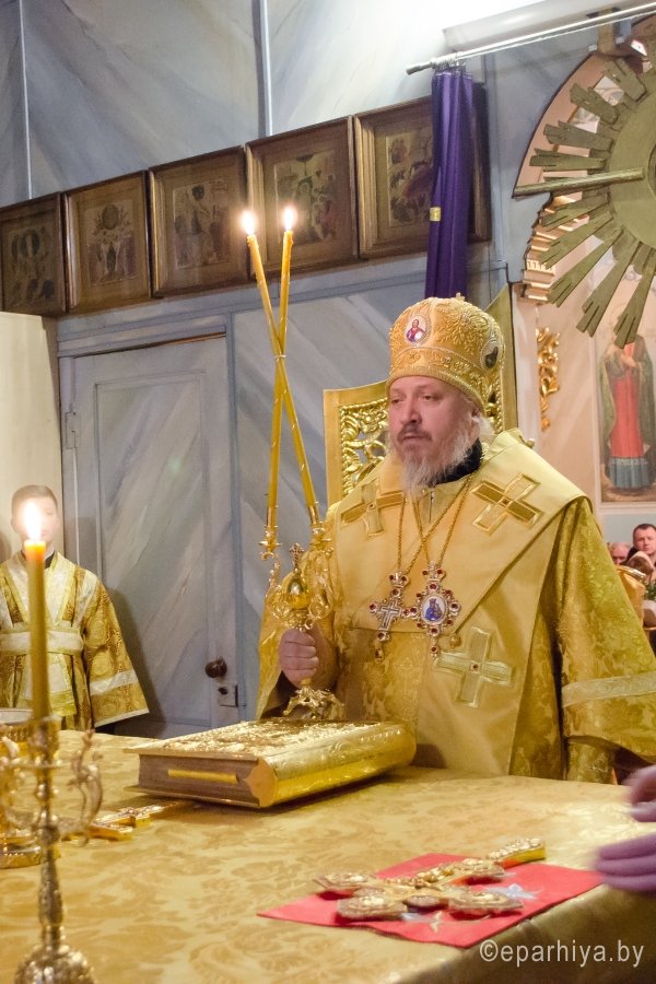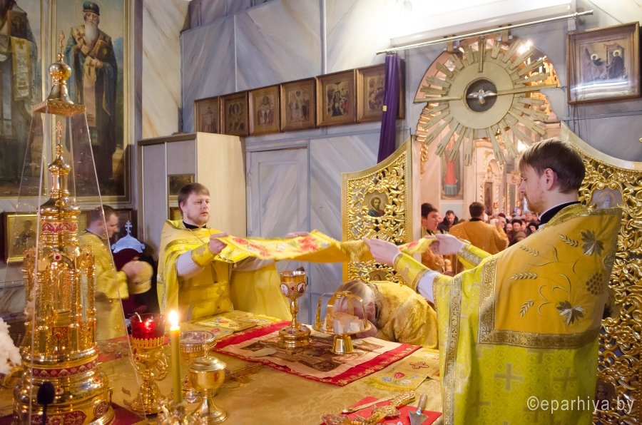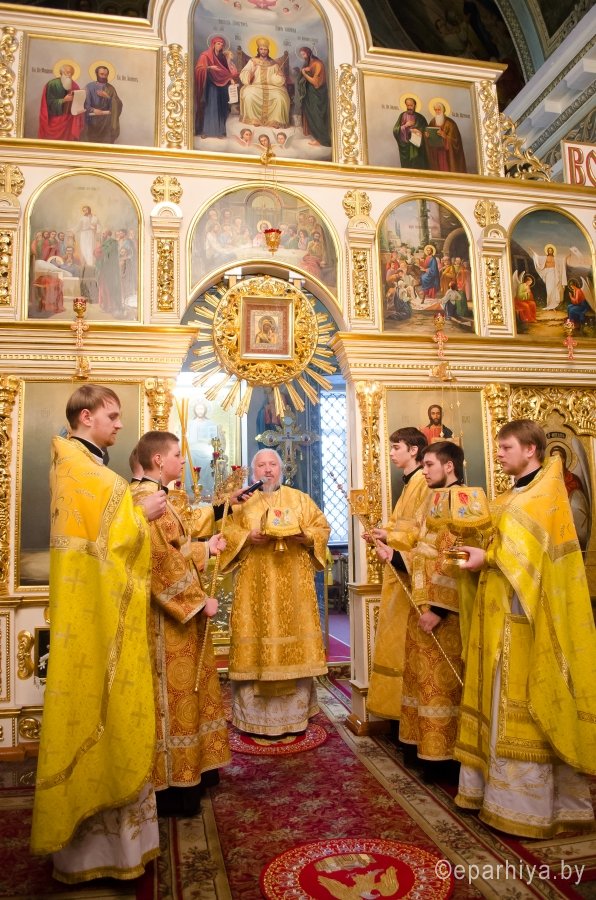 20 марта 2016г., в Неделю 1-ю Великого поста, Торжества Православия Преосвященнейший Стефан возглавил Божественную литургию в Свято-Петро-Павловском кафедральном соборе г.Гомеля. Преосвященному сослужили: секретарь Гомельской епархии протоиерей Георгия Алампиев и духовенство собора. По окончании богослужения Владыка обратился к молящимся со словом назидания, пожелав всем помощи Божией, поздравил причастников с принятием Святых Христовых Таин и преподал верующим архипастырское благословение. |