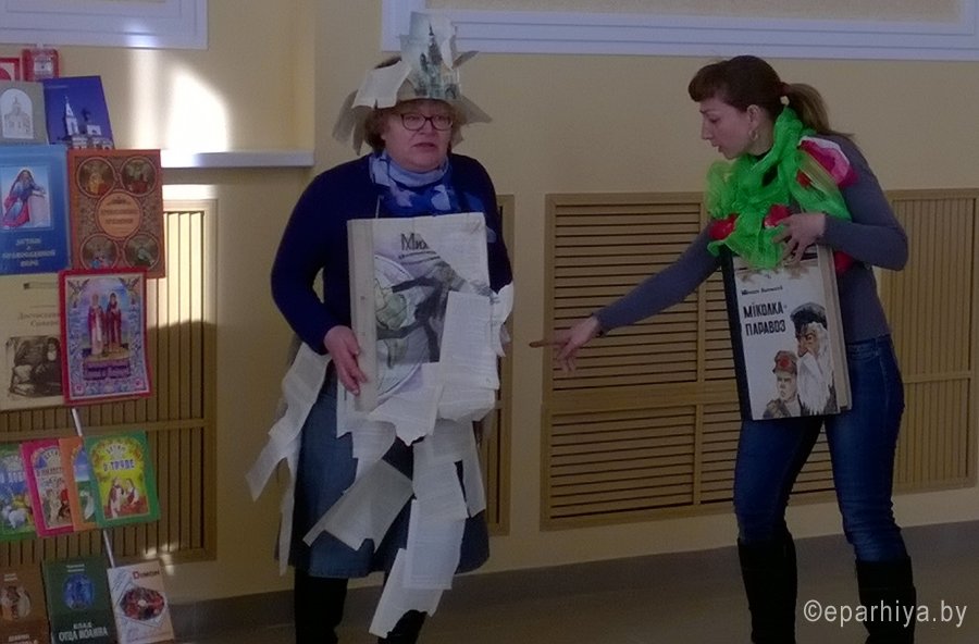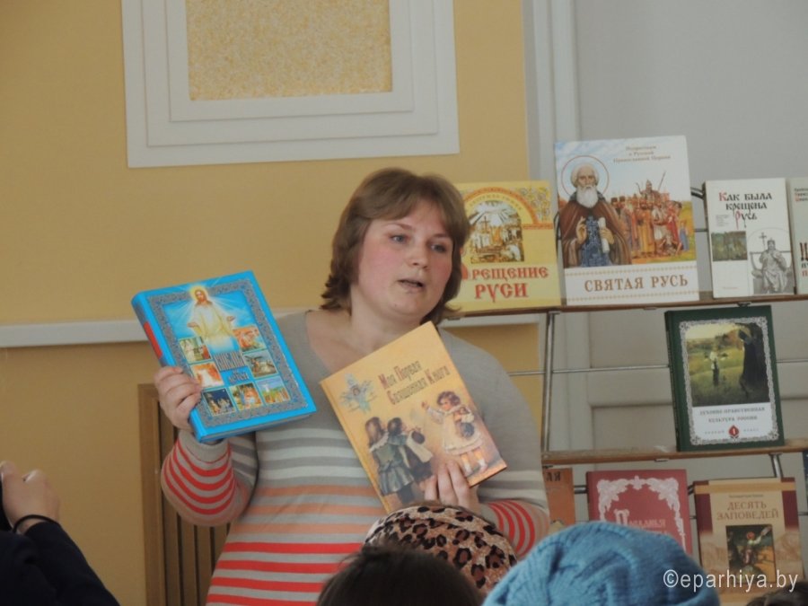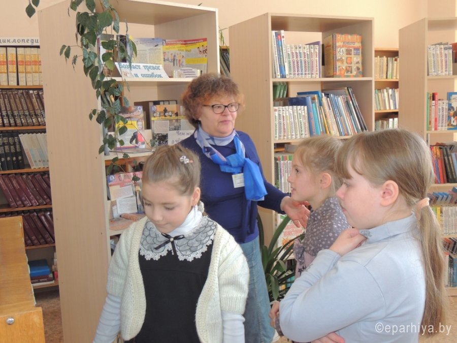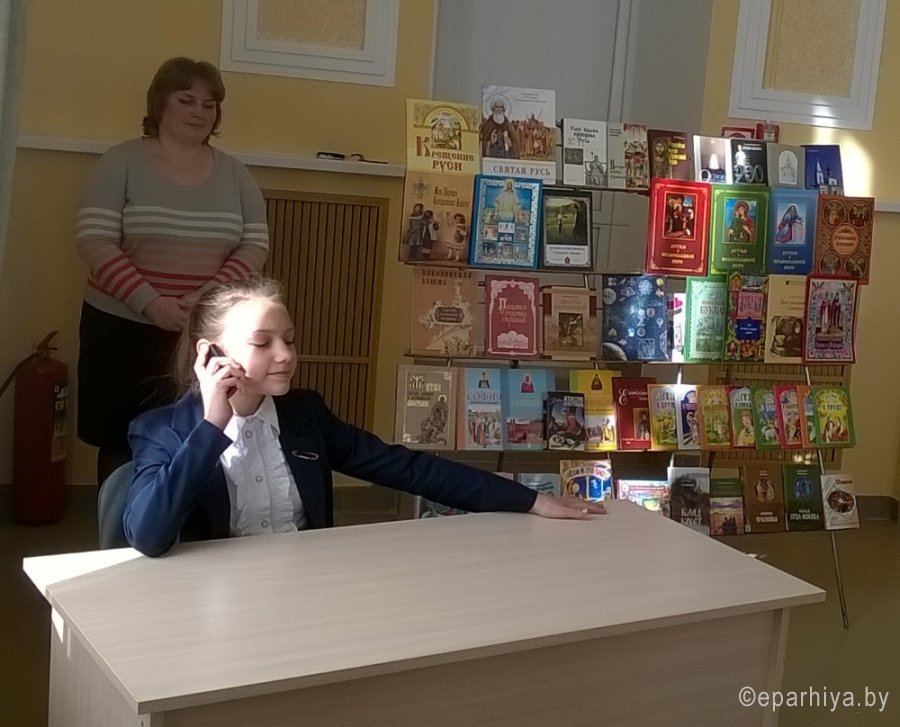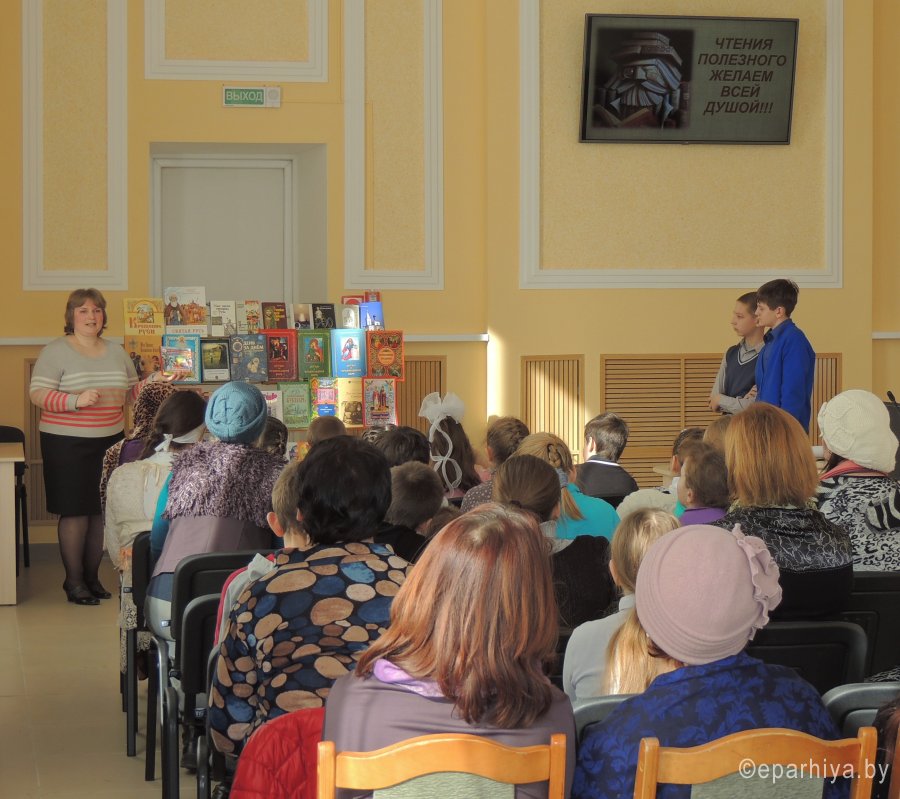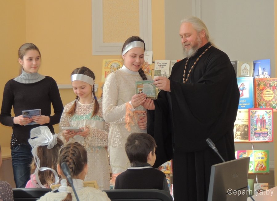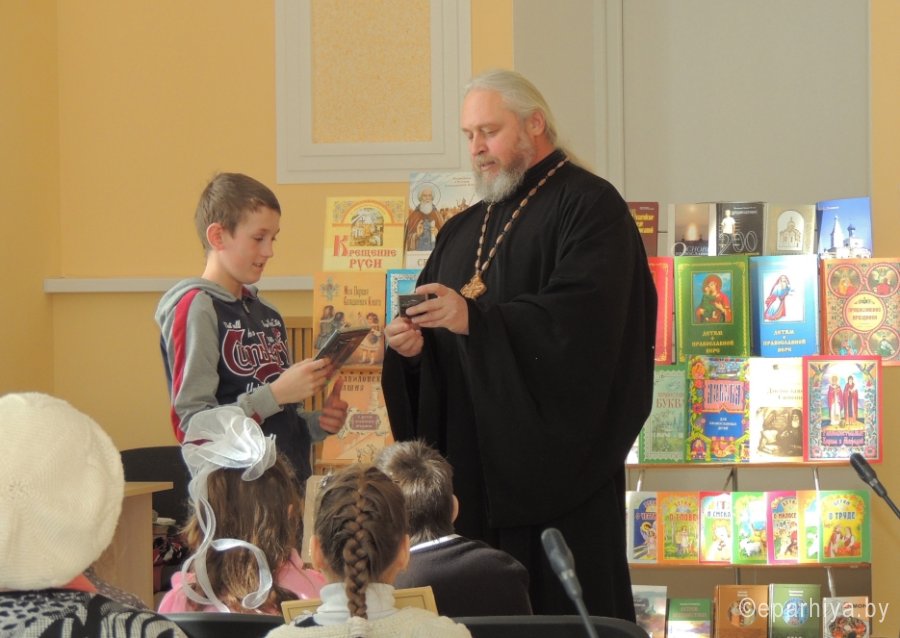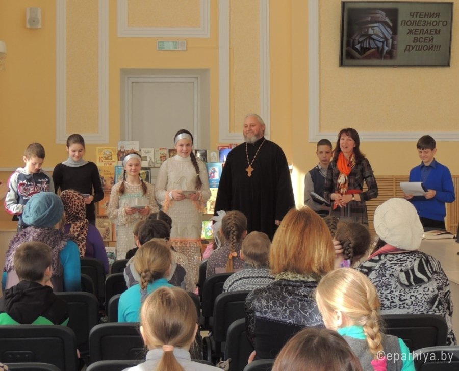 20 марта в Рогачёвской центральной районной библиотеке состоялся праздник «Есть чудо на земле с названьем дивным - книга…», который подготовили учащиеся Воскресной школы прихода храма Святого благоверного князя Александра Невского совместно с коллективом детского отдела библиотеки. Ребята рассказали юным читателям и их родителям о святых Кирилле и Мефодии и славянской азбуке, об истории книгопечатания и о важности бережного отношения к книге. Выступление дополнялось мультимедийной презентацией. Приятным сюрпризом для зрителей стала инсценировка сказки рогачёвского писателя Михася Сливы на белорусском языке «Як кнiгi дзяучынку выхавалi» в исполнении работников библиотеки. Разделить с ребятами праздник приехали и учащиеся воскресной учебно-воспитательной группы прихода храма Покрова Пресвятой Богородицы аг. Довск с преподавателем Авдеевой Анной Дмитриевной. Наряду с рогачёвскими ребятами, они принимали участие в конкурсе сочинений «Моя любимая книга». Благочинный Рогачёвского округа протоиерей Алексей Смотрицкий рассказал ребятам о важности чтения православной литературы и наградил участников и победителей конкурса памятными подарками. Заведующая детским отделом библиотеки Станислава Татьяна Сергеевна представила выставку православных детских книг. По окончании праздника ребята с удовольствием продолжили знакомство с новой библиотекой. |