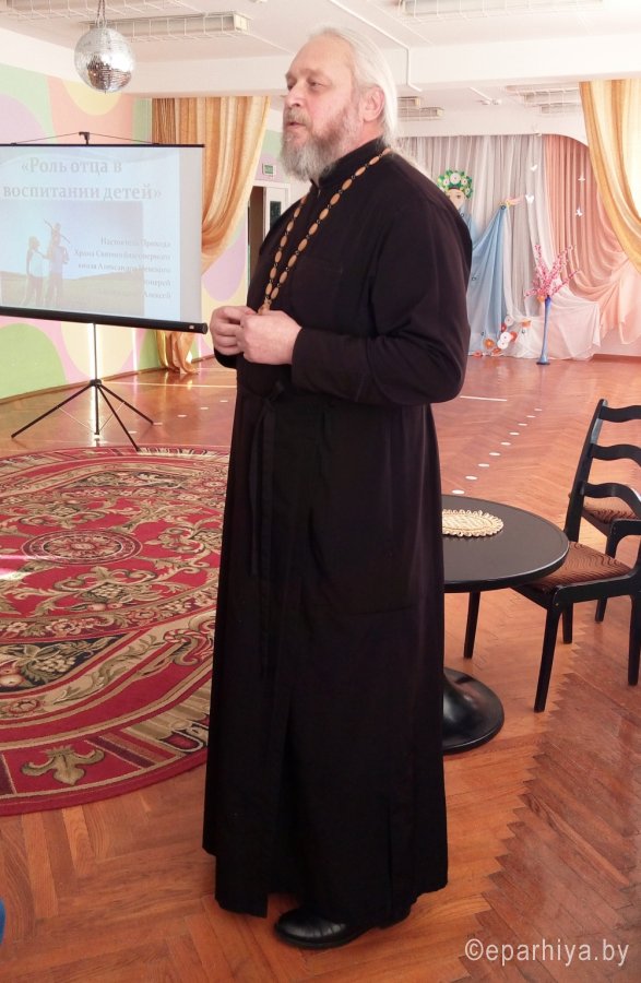 25 марта 2016г. настоятель прихода храма святого благоверного князя Александра Невского протоиерей Алексей Смотрицкий принял участие в первом собрании "Школы отцов" в яслях-саду №12 г. Рогачёва. Присутствовали на нём, не считая организаторов, только...папы. Открывая встречу, заведующий учреждением Евгения Арсентьевна Романова обратила внимание на то, что в современном обществе участие отца в воспитании ребёнка уменьшается. Как правило, роль мужчины сводится к обеспечению семьи, а воспитанием детей и в семье, и в детском саду, и в школе занимаются женщины. Это оказывает негативное влияние на формирование характера как мальчиков, так и девочек. Необходимо менять ситуацию, обратить внимание пап на значимость их общения с детьми, ведь, по словам Гербера, "один отец значит больше, чем сто учителей". Педагог-психолог Светлана Петровна Дымко озвучила результаты предварительного анкетирования "Какой я родитель?", высветившего трудности семейного воспитания, и дала рекомендации о том, как читать детские рисунки, чтобы вовремя заметить детские проблемы. Используя интерактивный метод «Циферблат», Евгения Арсентьевна обратила внимание отцов на то, что реальное время общения с детьми едва ли составляет час-полтора в сутки. Подводя итог, отец Алексей подчеркнул важность роли отца в воспитании детей, поделился своим жизненным опытом. Тема вызвала живой отклик: отцы активно обсуждали услышанное и предлагали темы для последующих занятий. «Школа отцов» продолжит свою работу. |