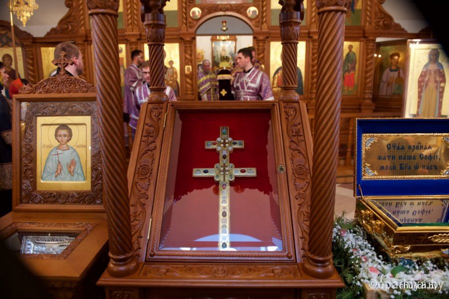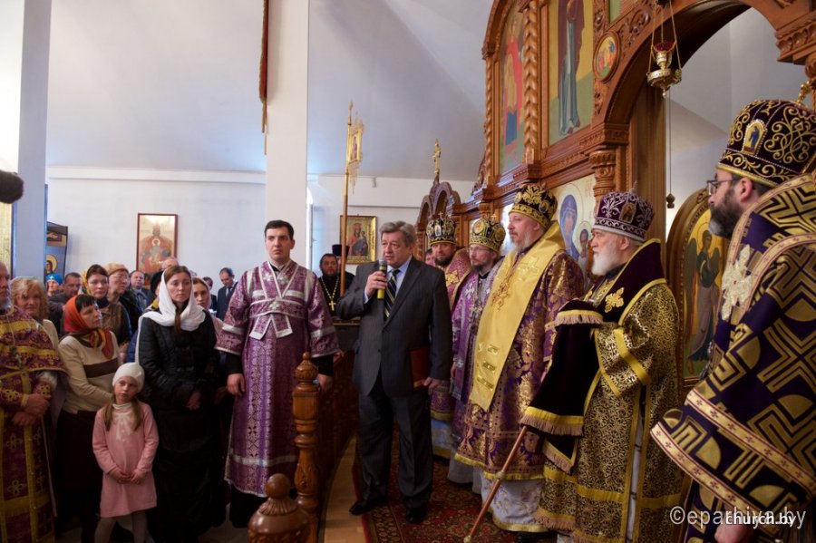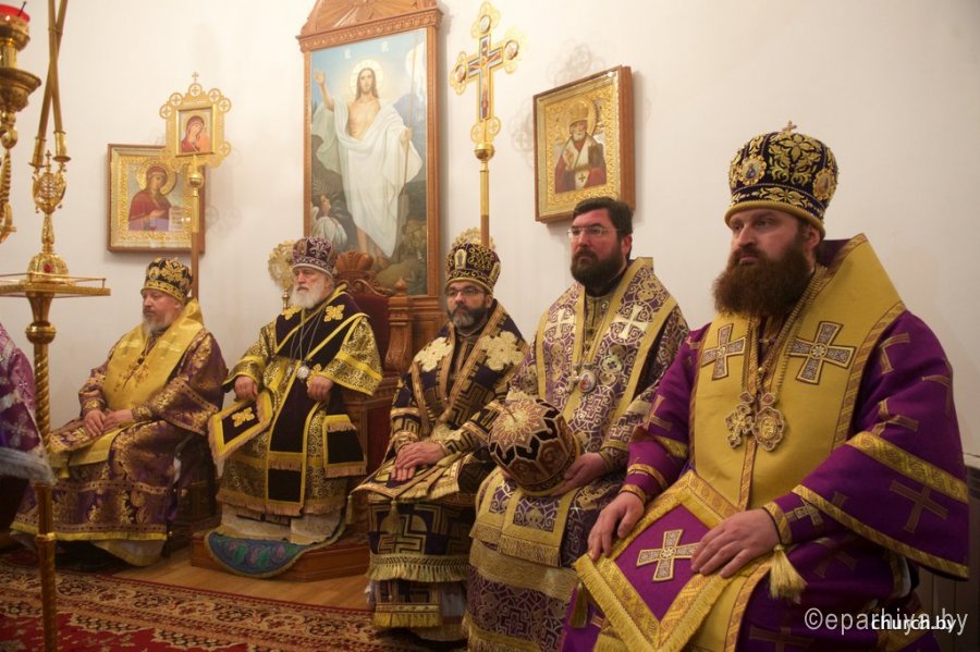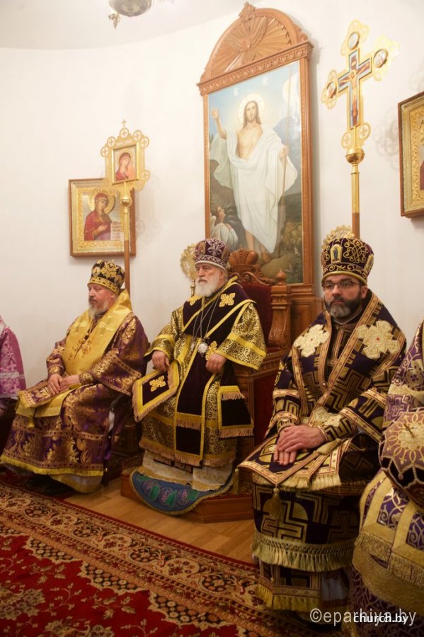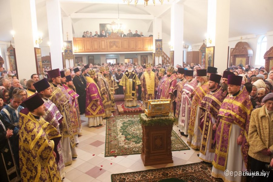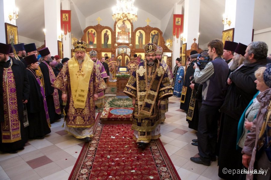 1 апреля 2016 года, в пяток 3-й седмицы Великого поста, в день памяти святой праведной княгини Софии Слуцкой, епископ Гомельский и Жлобинский Стефан сослужил митрополиту Минскому и Заславскому Павлу, Патриаршему Экзарху всея Беларуси за Божественной литургией Преждеосвященных Даров в храме бессребреников Космы и Дамиана женского монастыря в честь праведной Софии, княгини Слуцкой, города Слуцка. Праздничное богослужение было приурочено к 430-летию со дня рождения святой праведной Софии, княгини Слуцкой. Его Высокопреосвященству также сослужили: архиепископ Белостокский и Гданьский Иаков, епископы: Бобруйский и Быховский Серафим, Борисовский и Марьиногорский Вениамин, Слуцкий и Солигорский Антоний, Лидский и Сморгонский Порфирий и духовенство Слуцкой епархии. За богослужением присутствовали и молились: Уполномоченный по делам религий и национальностей Республики Беларусь Леонид Павлович Гуляко, генеральный директор ОАО «Беларуськалий» Иван Иванович Головатый. Богослужебные песнопения исполнил хор кафедрального собора Рождества Божией Матери города Солигорска под управлением Наталии Беляцкой. Проповедь перед Причастием произнес протоиерей Сергий Чарный. По окончании богослужения Патриарший Экзарх совершил чин освящения Креста, который является точной копией креста преподобной Евфросинии Полоцкой с частицами мощей святых угодников Божиих. После этого было совершено славление перед ковчегом с частицей мощей святого мученика младенца Гавриила Белостокского и стопой праведной княгини Софии Слуцкой. С приветственным словом к Патриаршему Экзарху обратился епископ Слуцкий и Солигорский Антоний. А затем со словами поздравления к духовенству и прихожанам обратился архиепископ Белостокский и Гданьский Иаков. После этого к присутствующим обратился Уполномоченный по делам религий и национальностей Республики Беларусь Леонид Павлович Гуляко. Он поздравил всех собравшихся с днем памяти святой праведной Софии Слуцкой и зачитал поздравительный адрес Правительства Республики Беларусь по случаю торжеств в честь 430-летия со дня рождения святой праведной Софии, княгини Слуцкой. Митрополит Павел поблагодарил архипастырей, священнослужителей, Леонида Павловича за совместную молитву и обратился к прихожанам и духовенству собора со словом назидания. Патриарший Экзарх поздравил всех причастников с принятием Святых Христовых Таин и преподал всем архипастырское благословение. По окончании праздничного богослужения митрополит Павел с архипастырями посетил Государственное учреждение образования «Слуцкий центр детского творчества», где для гостей была показана театрализованная постановка, посвященная 900-летию города Слуцка и 430-летию со дня рождения святой праведной княгини Софии Слуцкой. По материалам church.by Фото Александр Мизей: |