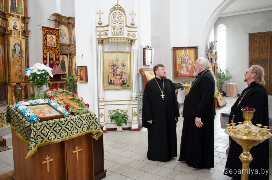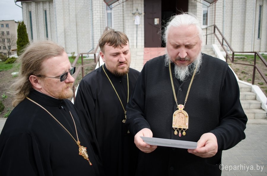 8 апреля 2016г., в ходе своего визита в Светлогорский благочинный округ, Преосвященнейший Стефан совершил рабочие поездки по строящимся и реставрируемым храмам округа. Владыка посетил крестильный храм Спасо-Преображенского собора г.Светлогорска, храм Кирилла Туровского г.Светлогорска, храм Святителя Николая Чудотворца д.Якимова Слобода и храм св.вмч.Варвары д. Боровики. Настоятели храмов ознакомили Преосвященного с ходом строительных и реставрационных работ, а также положением дел на приходах. |