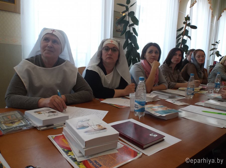 8 апреля 2016 года, в дни Великого поста, в большом зале Епархиального Управления прошел семинар «Продуктивные методы и приемы консультирования беременных женщин, находящихся в сложной жизненной ситуации». В семинаре приняли участие сестры милосердия приходов храмов епархии, психологи-практики Управления здравоохранения, психологи-добровольцы Гомельского епархиального центра семьи и детства «Ладушки» и гинекологи учреждений здравоохранения. Открыл семинар секретарь епархии протоиерей Георгий Алампиев. Вели круглый стол протоиерей Владимир Силенко, председатель социального отдела епархии и протоиерей Алексий Смотрицкий, отец-благочинный Рогачевского округа. В начале семинара протоиерей Алексий Смотрицкий поделился с присутствующими 8-летним опытом сотрудничества прихода храма с учреждением здравоохранения г.Рогачева. Он отметил: «У нас уже налажено доброе и плодотворное взаимодействия с врачами. И не только сестры милосердия, но и мы: сами священники прихода храма Святого благоверного князя Александра Невского в г.Рогачеве ведем консультации беременных женщин, которые приняли решение сделать аборт». Затем духовник сестричества милосердия — иерей Николай Савостьянов и сестры милосердия сестричества милосердия во имя Святой мученицы Татианы при храме Успения Пресвятой Богородицы в г.Речица поделились своим позитивным опытом общения с беременными женщинами, а так же консультированием. Духовник сестричества милосердия иерей Вячеслав Рябица и сестры милосердия сестричества милосердия в честь иконы Божией Матери «Всецарица» в г.Жлобине только начинают свой путь, и они живо интересовались всем, что происходило и высказывали свое мнение. Протоиерей Владимир Дробышевский, руководитель Гомельского епархиального Центра семьи и детства «Ладушки» выразил пожелание увеличения консультантов добровольцев-психологов центра. Ведущий психолог-доброволец центра «Ладушки»-Логунова Людмила Владимировна, профессионально ознакомила всех с методами и приемами психологического консультирования беременных женщин. В завершении были подведены итоги семинара и принято решение провести очередную встречу во второй половине мая месяца текущего года на семинаре-практикуме. |