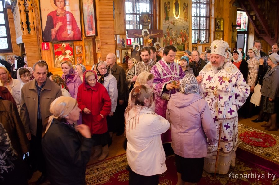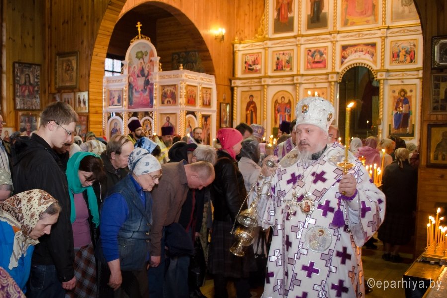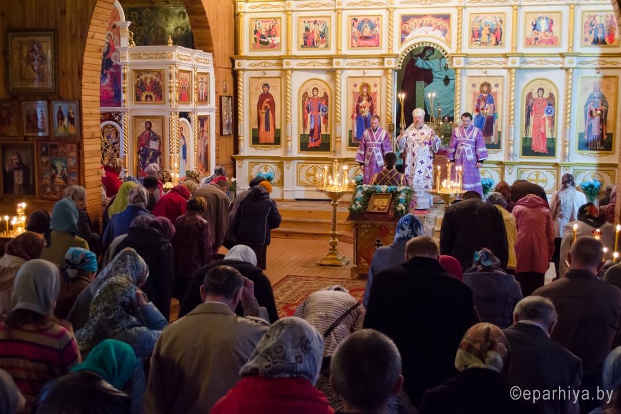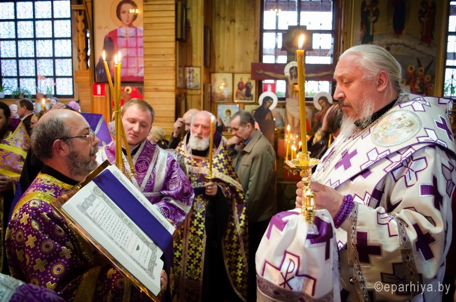 10 апреля 2016г., в канун Недели 4-й Великого поста, Преосвященнейший Стефан возглавил всенощное бдение в Свято-Михайловском храме г.Гомеля. Преосвященному сослужили: благочинный Гомельского городского округа протоиерей Стефан Гладыщук и духовенство храма. По окончании богослужения Владыка обратился к молящимся со словами Архипастырского назидания. |