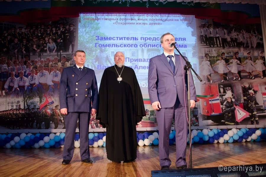 15 апреля 2016 года представители духовенства епархии во главе с Преосвященным Стефаном, епископом Гомельским и Жлобинским приняли участие в областном межведомственном форуме «Сохраним жизнь детей», который прошел на базе ГУО «Лицей при Гомельском инженерном институте» Министерства по чрезвычайным ситуациям Республики Беларусь. Священники вошли в составы региональных делегаций, включавших в себя также заместителей горрайисполкомов, начальников отделов образования, спорта и туризма городских и районных администраций, представителей районных отделов по ЧС, внутренних дел, региональных средств массовой информации, организаций здравоохранения, ОСВОД. Открыли мероприятие заместитель председателя Гомельского облисполкома Владимир Привалов, заместитель прокурора Гомельской области Василий Бровко и епископ Гомельский и Жлобинский Стефан. Затем прошло награждение победителей конкурса «Спасатель года». В ходе пленарного заседания выступали представители управлений образования и здравоохранения облисполкома, МЧС, госавтоинспекции, ОСВОДа, областного совета старшеклассников, руководитель Рогачевского молочно-консервного комбината. Данный форум в первую очередь был призван рассмотреть вопросы взаимодействия учреждений образования с государственными органами, общественными объединениями в деле обеспечения безопасной жизнедеятельности детей, предупреждения их гибели от внешних причин и суицидов, профилактики негативных явлений в семьях. Еще одной целью встречи Евгений Миткевич, заместитель председателя комиссии по делам несовершеннолетних облисполкома, обозначил возможность поделиться опытом совместной работы всех структур. По итогам форума было принято обращение к родителям и общественности. Перед началом пленарного заседания для гостей были проведены экскурсии по лицею, знакомство с его работой, достижениями, даны подробные ответы на возникающие вопросы. А в завершении всех ознакомили с выставкой различной спецтехники и показали, чему учатся воспитанники лицея, будущие сотрудники подразделений по чрезвычайным ситуациям. Обращаясь к участникам форума епископ Стефан сделал акцент на важности духовного воспитания в семьях, любви и постоянном интересе к тому, чем живут наши дети, на необходимости общения и доверия: - Дорогие друзья! Эта тема, которую мы сегодня рассматривали, начинается с семьи и духовности. Духовность состоит в первую очередь из того, как относятся к культуре своего народа в семье. Большинство из нас люди крещеные, православные, которые видят в своем городе или селе православный храм, двери которого открыты каждый день. Мы должны рассказывать детям историю своего народа, своей религии, евангельскую историю, чтобы дети увидели жизнь по- другому, не в страстях и пороках, а чтобы увидели, что в этой жизни есть высшее Начало, есть признание в любви к друг другу, уважение человека к человеку. И мы, старшие, должны с большей ответственностью относиться к своим детям и к их нуждам, уделять больше внимания им и их духовному воспитанию, общаться с ними. Чтобы дети понимали, что после этой жизни есть другая, что есть душа, а душа бессмертна. И заботясь о том, чтобы наша душа была всегда с Богом, надо начинать с этой жизни, это проявляется в заботе о близких, с добрых дел. Важно любые проблемы и беды разд