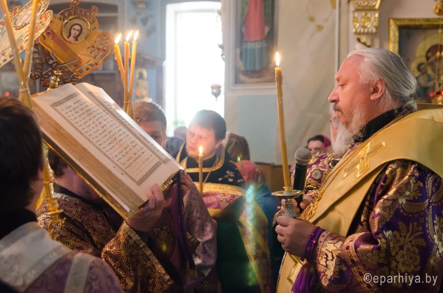 16 апреля 2016г., в канун Недели 5-й Великого поста, дня памяти Марии Египетской, Преосвященнейший Стефан возглавил всенощное бдение в Свято-Петро-Павловском кафедральном соборе г.Гомеля. Преосвященному сослужили: секретарь Гомельской епархии протоиерей Георгий Алампиев и духовенство собора. По окончании богослужения Владыка обратился к молящимся со словами Архипастырского назидания. |