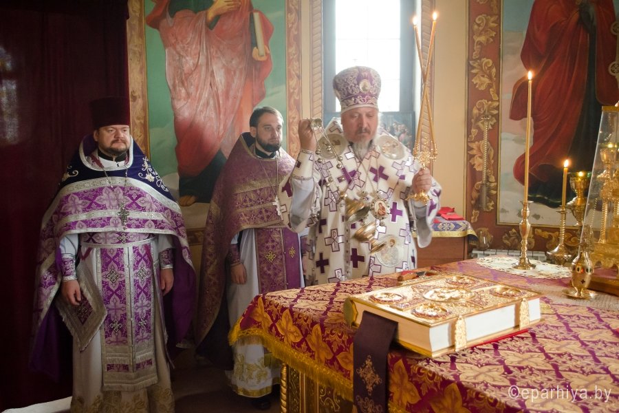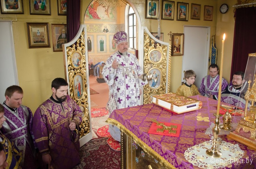 22 апреля 2016г., в пятницу 6-й седмицы Великого поста, Преосвященнейший Стефан возглавил Божественную литургию Преждеосвященных Даров в храме Преображения Господня г.Гомеля. Преосвященному сослужили: Председатель Информационного отдела Гомельской епархии, настоятель Спасо-Преображенского храма г.Гомеля протоиерей Олег Кострома и духовенство храма. По окончании Литургии Владыка поздравил с Днем Ангела клирика прихода иерея Вадима Грицкова и обратился к священнослужителям и прихожанам со словом назидания, поблагодарил всех за совместную молитву, поздравил причастников с принятием Святых Христовых Таин и благословил всех Святым Образом. |