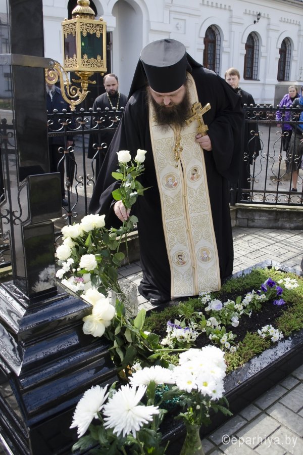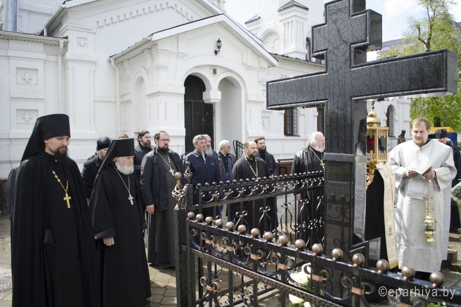 23 апреля 2016 года, в годовщину со дня преставления архиепископа Аристарха, Преосвященнейший Стефан в сослужении секретаря Гомельской епархии протоиерея Георгия Алампиева, наместника Свято-Никольского мужского монастыря г.Гомеля архимандрита Амвросия(Шевцова), братии монастыря в священном сане и духовенства епархии возглавил заупокойную панихиду на могиле приснопамятного архиепископа Аристарха. Архиепископ Аристарх (в миру Андрей Евдокимович Станкевич) родился 9 июня 1941 года в деревне Осовецкая Буда Мозырского района Гомельской области. В 1969 году закончил Одесскую Духовную семинарию, продолжил обучение в Московской духовной академии. Имеет степень кандидата богословия. В 1970 году зачислен в число братии Троице-Сергиевой Лавры, г.Сергиев Посад Московской области. Вскоре пострижен в монашество с наречением имени Аристарха в честь ап. от 70-ти Аристарха. А в День Св. Троицы 14 июня 1970 года рукоположен во иеродиакона. Через год становится старшим иподиаконом Святейшего Патриарха Пимена. 5 сентября 1977 года рукоположен во иеромонаха. Спустя год возведен в сан архимандрита и назначен ризничным Троице-Сергиевой Лавры. 20 июля 1990 года Постановлением Святейшего Патриарха Московского и всея Руси Алексия II и Священного Синода назначен епископом Гомельским и Мозырским. 29 июля 1990 года, в Неделю 8-ю по Пятидесятнице, в день памяти святых Отцов шести Вселенских Соборов, за Божественной литургией в Свято-Успенском соборе Жировичского монастыря совершена хиротония архимандрита Аристарха во епископа Гомельского и Мозырского. С 1992 года Преосвященный Аристарх - епископ Гомельский и Жлобинский, возведен в сан архиепископа 25 февраля 2000 года. Упокоился 23 апреля 2012г. |