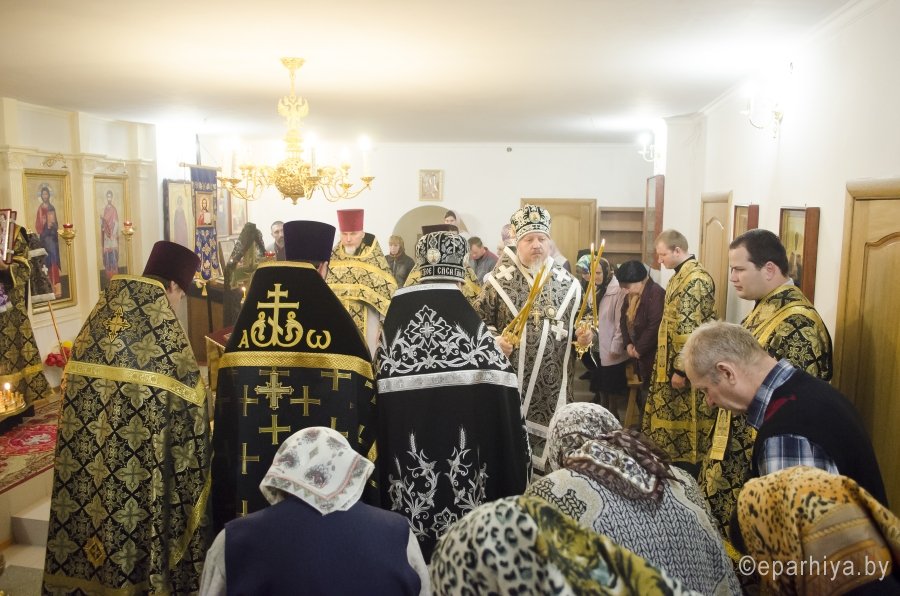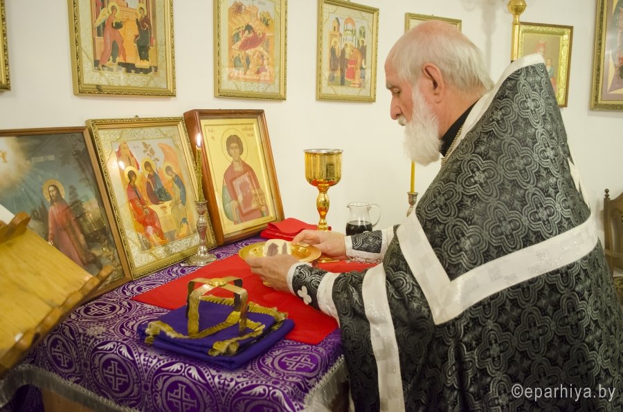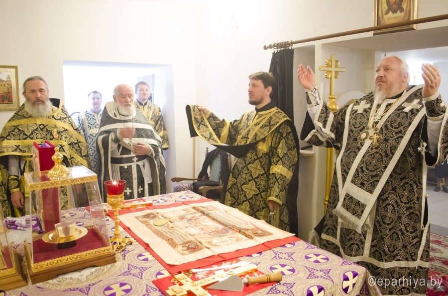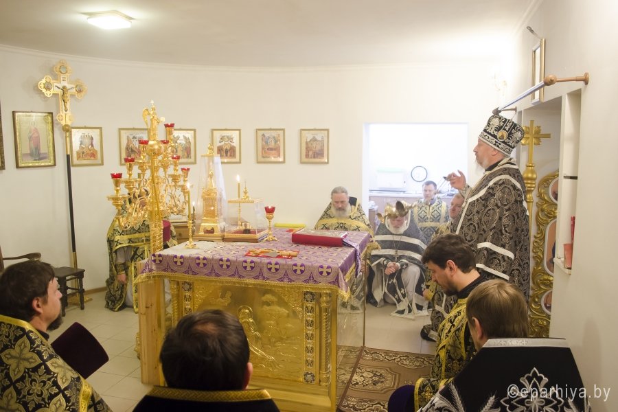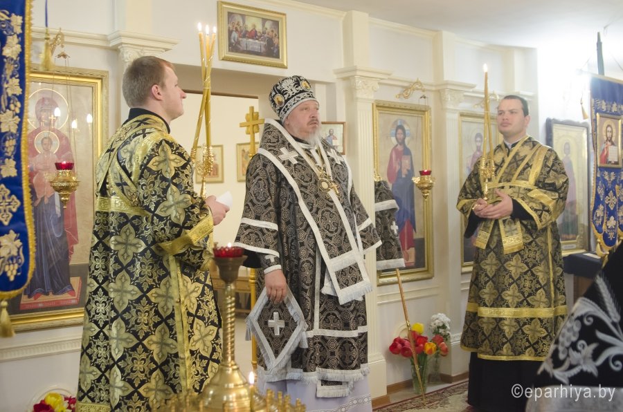 25 апреля 2016г., в Великий Понедельник, Преосвященнейший Стефан возглавил Божественную литургию в храме великомученника и целителя Пантелеимона г.Гомеля. Преосвященному сослужили: секретарь Гомельской епархии протоиерей Георгий Алампиев, благочинный Гомельского городского благочинного округа протоиерей Стефан Гладыщук и духовенство епархии. По окончании Литургии Владыка обратился к священнослужителям и прихожанам со словом назидания, поблагодарил всех за совместную молитву, поздравил причастников с принятием Святых Христовых Таин. |