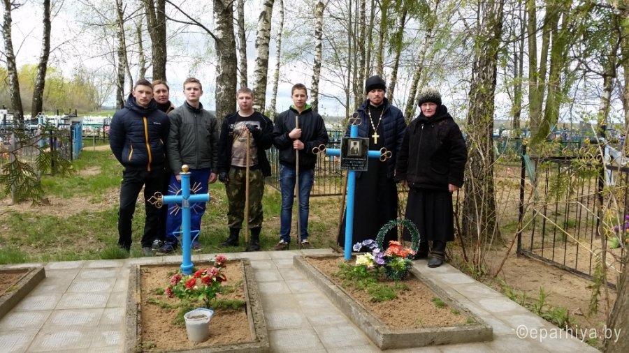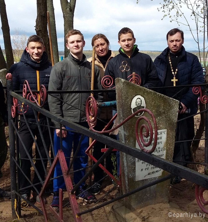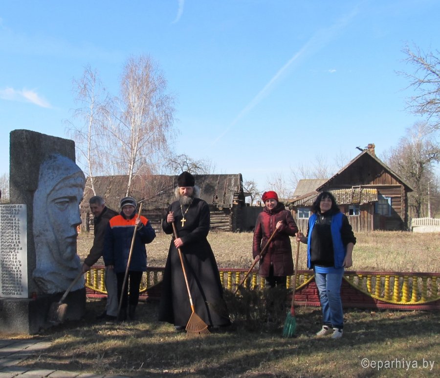 В Рогачёвском благочинии накануне праздника Пасхи Христовой проводятся акции по наведению порядка в местах захоронений священнослужителей, на братских могилах и мемориальных комплексах. 12 апреля настоятель храма Святителя Николая Чудотворца в г.п. Корма иерей Виталий Лехнович, совместно с первым секретарем Кормянского районного комитета ОО «БРСМ» Дмитрием Ривоненко и главным специалистом Алексеем Гордиенко провели работы по наведению порядка на кладбище д. Хизов, где похоронен епископ Глеб (Савин), возглавлявший Полоцкую епархию в 1992-1996 годах. А также где более десяти лет назад были перезахоронены останки священников, найденные при строительстве здания школы на месте бывшего церковища. Ранее на месте школы стоял деревянный православный храм в честь святого Георгия Победоносца, но он сгорел, сведений о нем мало. Помогали наводить порядок и учащиеся Хизовской школы, занимающиеся в кружке краеведения. Священник и молодежь много общались на тему истории д. Хизов, православных традиций и обычаев. По окончании работ иерей Виталий Лехнович и представители районного комитета «БРСМ» посетили ветерана Великой Отечественной войны Евгения Иосифовича Максименко, проживающего в д. Берестовец. Священник побеседовал с ветераном, передал ему набор продуктов, а Дмитрий Ривоненко прибил на фасад дома табличку «Здесь живет ветеран». 15 апреля прихожане храма Святого Духа д. Дворец и учащиеся Дворецкой средней школы навели порядок на братской могиле в д. Кошара и у памятника Советским воинам в д. Дворец. 23 апреля на приходе храма Святителя Николая Чудотворца деревни Старый Кривск прошла уборка территории кладбища, священнических могил и мест захоронения воинов.Вместе со священнослужителем прихода храма Покрова Пресвятой Богородицы в аг. Довск иереем Георгием Орловским на благоустройство кладбища вышли прихожане храма и старшеклассники Довской средней школы. |