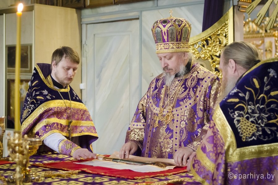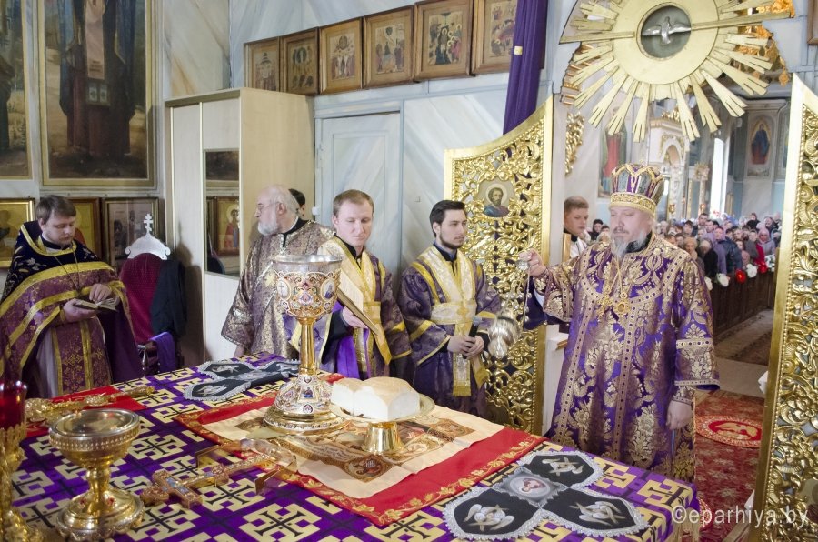 28 апреля 2016 года, в четверг Страстной седмицы Великого поста, воспоминание Тайной Вечери, Преосвященнейший Стефан возглавил Божественную Литургию в кафедральном соборе святых апостолов Петра и Павла. Владыке сослужили: секретарь Гомельской епархии протоиерей Георгий Алампиев и духовенство собора. По окончанию богослужения Владыка освятил соль, обратился к священнослужителям и прихожанам со словом назидания, поблагодарил всех за совместную молитву, поздравил причастников с принятием Святых Христовых Таин. |