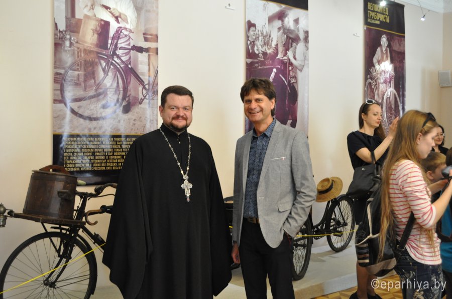 30 апреля 2016 г. Председатель Информационного отдела Гомельской епархии протоиерей Олег Кострома принял участие в открытии выставки "Вся жизнь в одном велосипеде", которое прошло в дворце Румянцевых и Паскевичей Гомельского дворцово-паркового ансамбля. Выставка увлекает посетителей в самое увлекательное "велосипедное" путешествие - в прошлое. В те времена, когда велосипед был не просто другом человека - он был его кормильцем, неотъемлемой частью его повседневной жизни. Компания "ИталиМания", Национальный исторический музей Республики Беларусь и музей Гомельского дворцово-паркового ансамбля при поддержке ЧТУП "БАЙК-СЕРВИСс" представили проект "Вся жизнь в одном велосипеде". Эта выставка, благодаря великолепной визуальной составляющей и неподражаемой атмосферности, вызвала неподдельный интерес и получила признание в Италии и в других европейских странах. Экспонаты коллекции были представлены на крупнейшей экспозиции «EХРО» в Милане. |