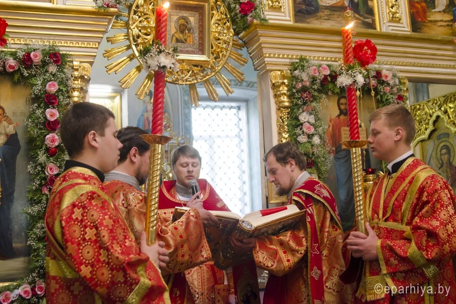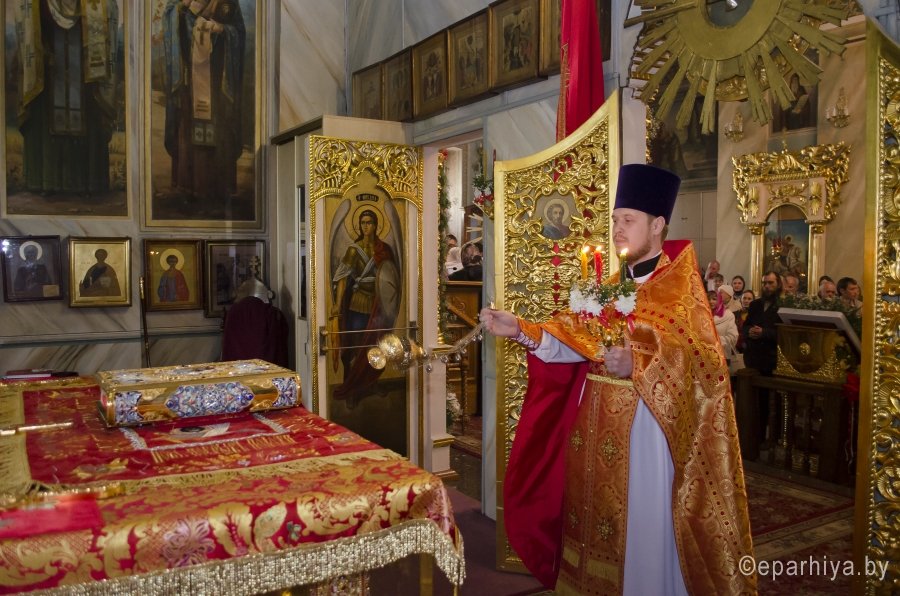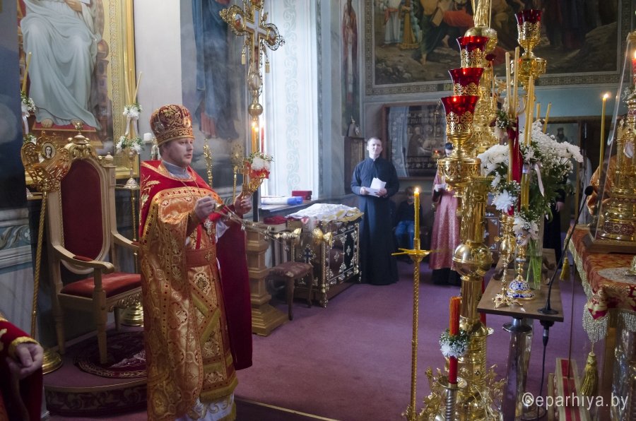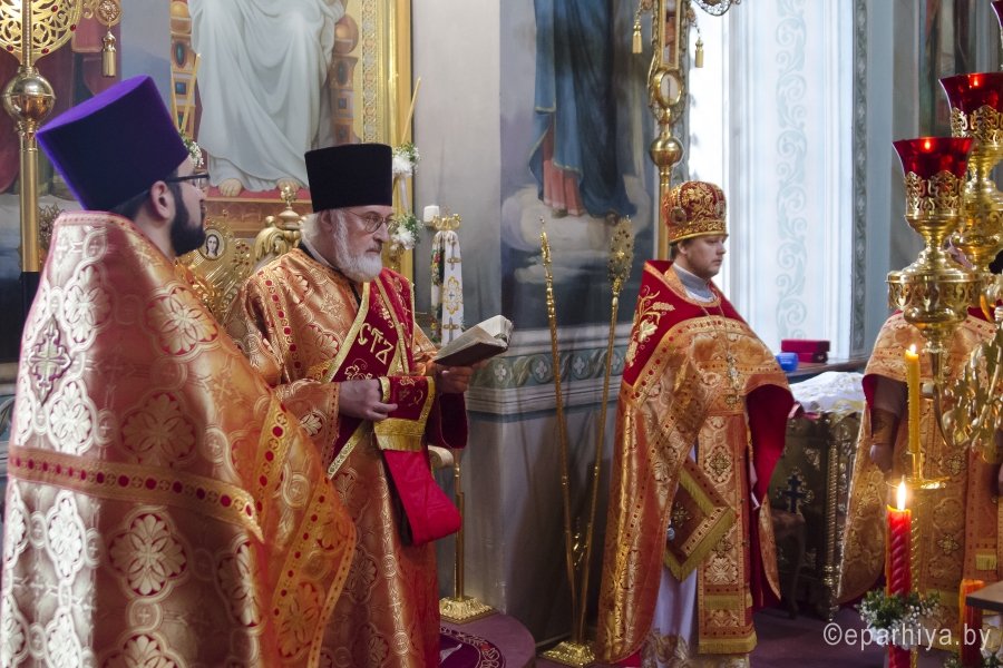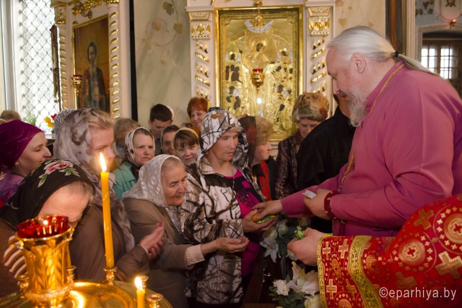 1 мая 2016г., в день Пасхи Христовой, вечерню в Свято-Петро-Павловском кафедральном соборе г.Гомеля в сослужении духовенства собора возглавил секретарь Гомельской епархии протоиерей Георгий Алампиев. Богослужебные песнопения исполнил народный молодёжный камерный хор "Возрождение" под управлением Галины Еременко. По окончании богослужения Преосвященнейший Стефан обратился к молящимся со словами Архипастырского назидания. Маленькие прихожане в этот день получили от Владыки сладкие подарки. |