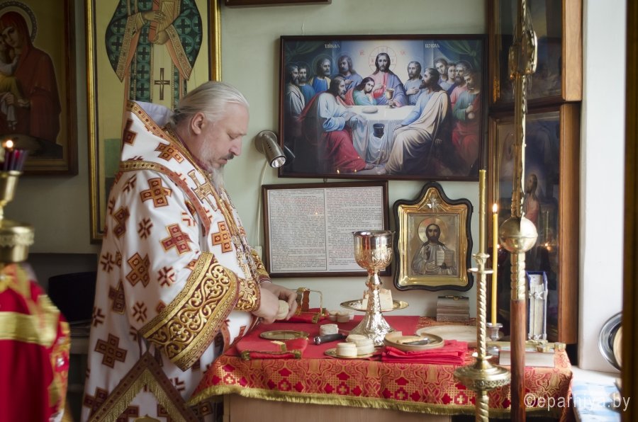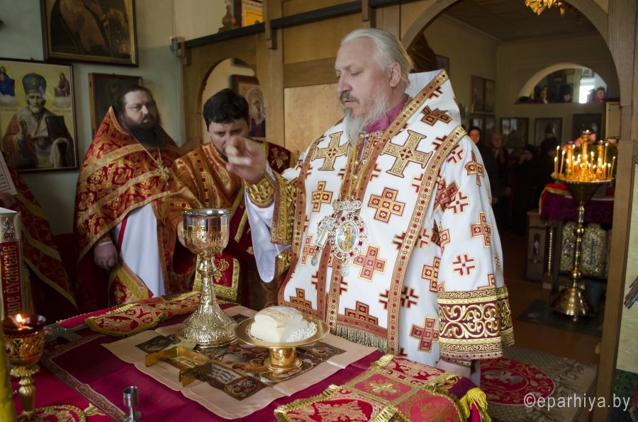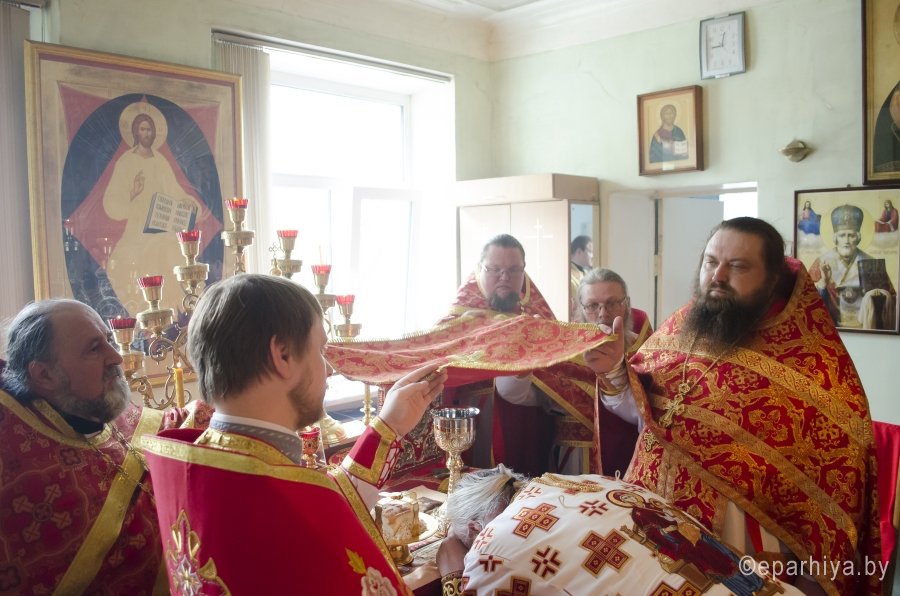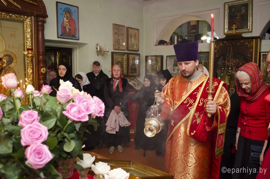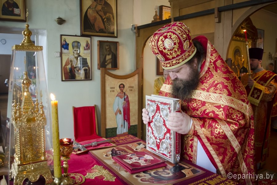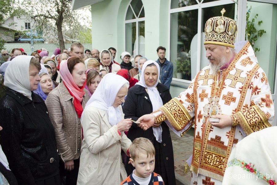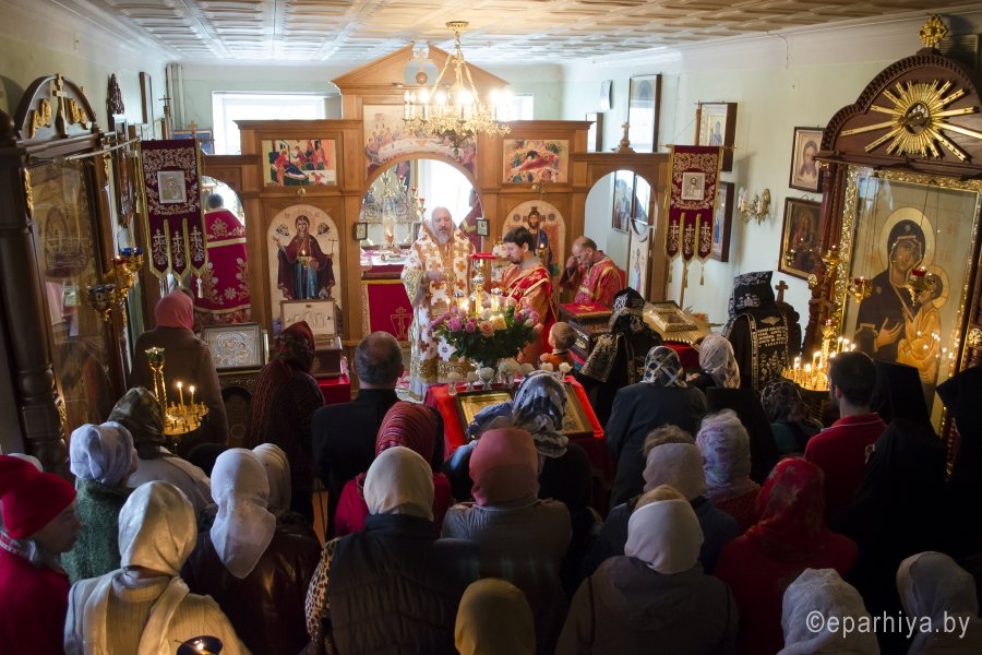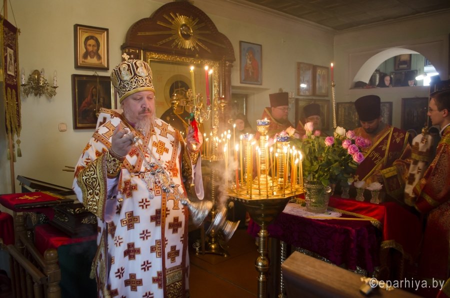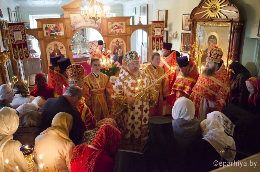 2 мая 2016г., в день памяти блж. Матроны Московской, Преосвященнейший Стефан возглавил Божественную литургию в одноименном храме Свято-Тихвинского женского монастыря г.Гомеля. Преосвященному сослужили: секретарь Гомельской епархии протоиерей Георгий Алампиев, благочинный монастырей Гомельской епархии архимандрит Амвросий(Шевцов) и духовенство епархии. По окончании богослужения Владыка поздравил духовенство и прихожан с Христовым Воскресением и престольным праздником. |