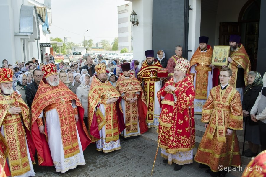 3 мая 2016г., в день празднования иконы Божией Матери "Иверская", Преосвященнейший Стефан возглавил Божественную литургию в одноименном храме г.Гомеля. Преосвященнейшему сослужили: благочинный монастырей Гомельской епархии архимандрит Амвросий(Шевцов), благочинный Гомельского городского округа протоиерей Стефан Гладыщук, настоятель Иверского храма г.Гомеля протоиерей Георгий Тур и духовенство прихода. По окончании богослужения Владыка возглавил Крестный ход, после чего поздравил духовенство и прихожан с престольным праздником и благословил всех присутствующих Святым Образом. |