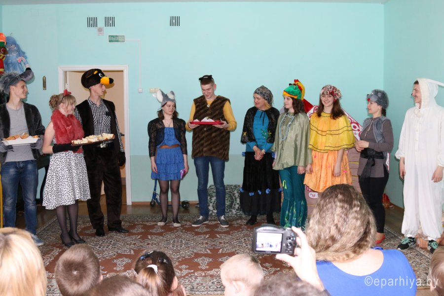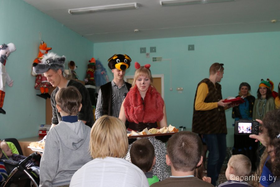 В продолжение доброй традиции в эти Светлые дни настоятель храма Священного мученика Алексия пресвитера Лельчицкого протоиерей Александр Лопушанский и настоятель храма Святого Архангела Михаила в г. Гомеле протоиерей Игорь Ольшанов навестили пациентов Гомельской областной психиатрической больницы. Они рассказали о Воскресении Христовом и поздравили всех с Великим праздником. Встреча проходила под Пасхальные песнопения в исполнении хора храма святого Архангела Михаила в г. Гомеле под руководством Марии Степанюк. В завершении больнице были переданы Пасхальные куличи и предметы первой необходимости. Поделиться Пасхальной радостью и частичкой душевного тепла смогли в этот день волонтеры храма святого Архангела Михаила в г. Гомеле и курсанты ВТФ УО «БелГУТ» под руководством настоятеля храма протоиерея Игоря Ольшанова. В Центре коррекционно-развивающего обучения и реабилитации молодые юноши и девушки представили сказку «Теремок» и игровую программу. Воспитанникам Центра также были переданы Пасхальные куличи и гигиенические средства. |